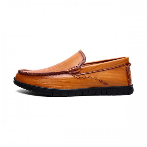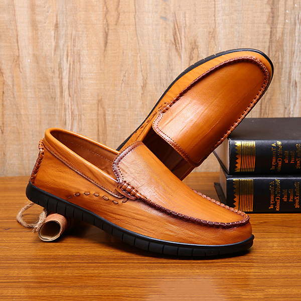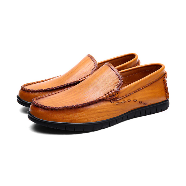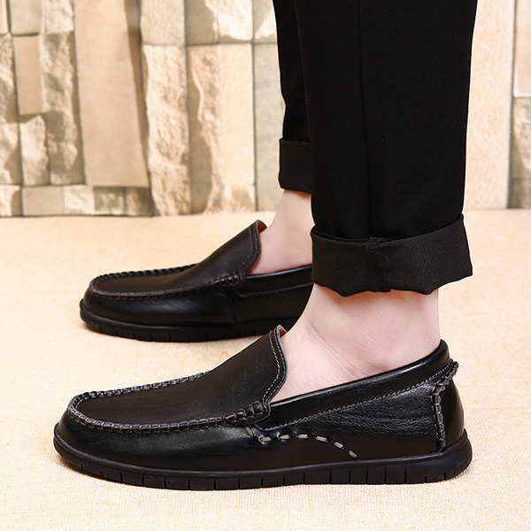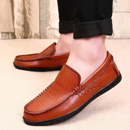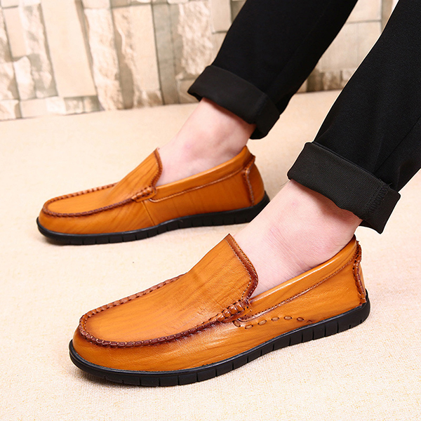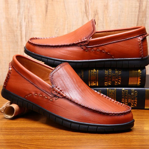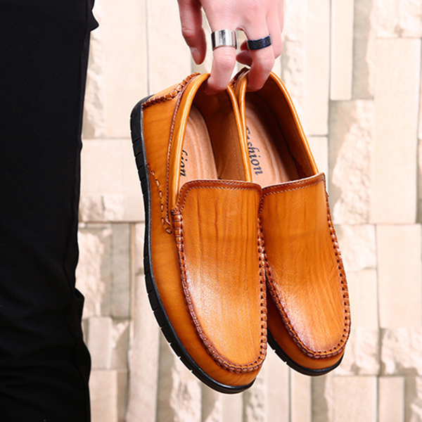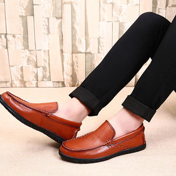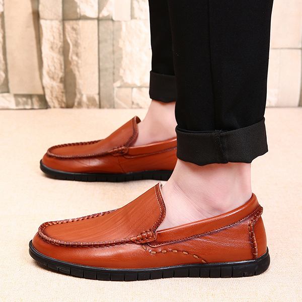 Men Casual Breathable Genuine Leather Slip On Oxfords Moc Toe Shoes