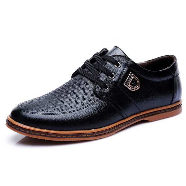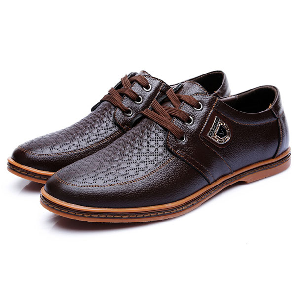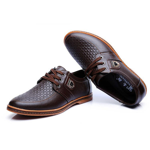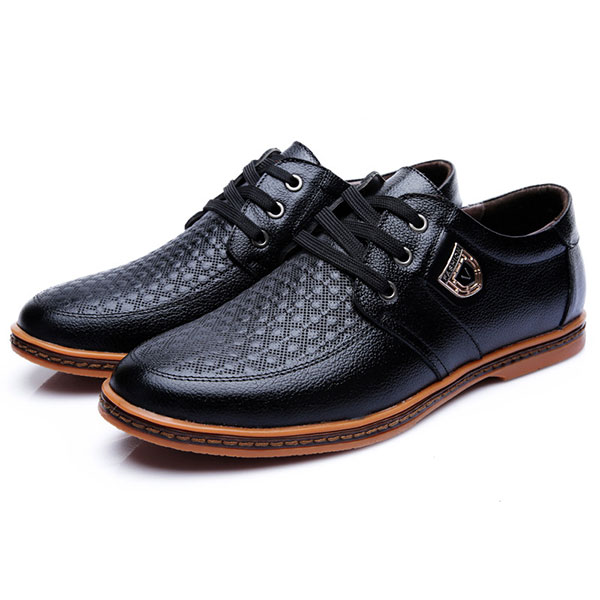 Large Size Men Casual Shoes Comfortable Breathable Lace-Up Leather Shoes