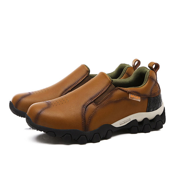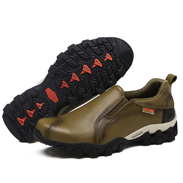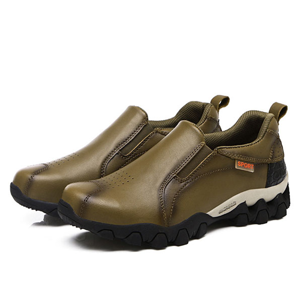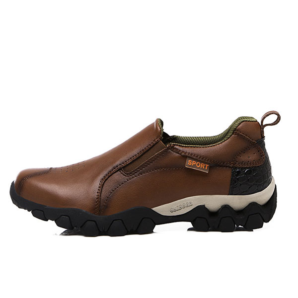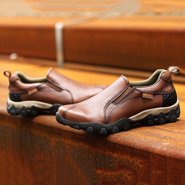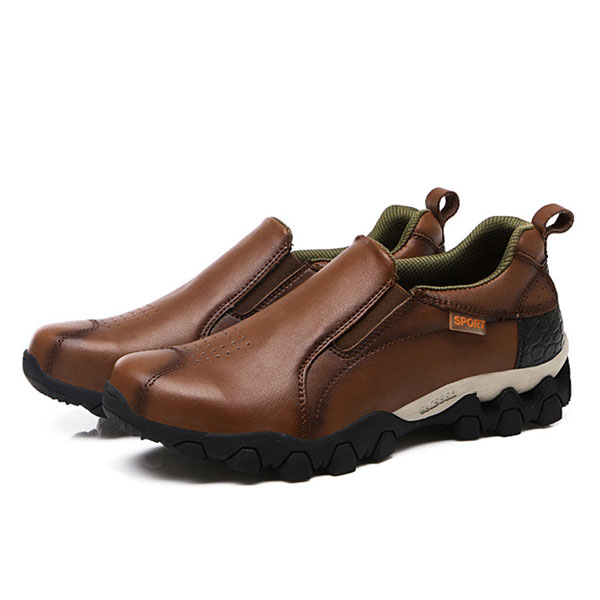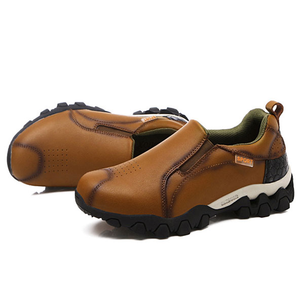 Men Genuine Leather Wear Resistant Outsole Elastic Band Slip On Sneakers