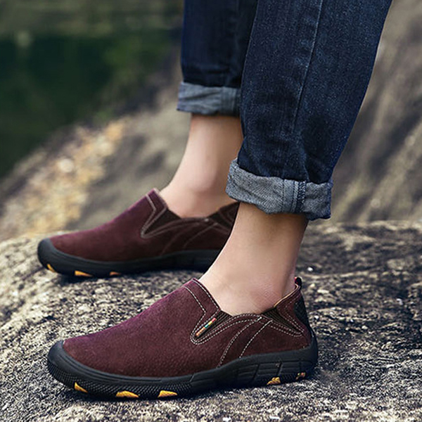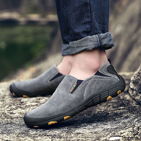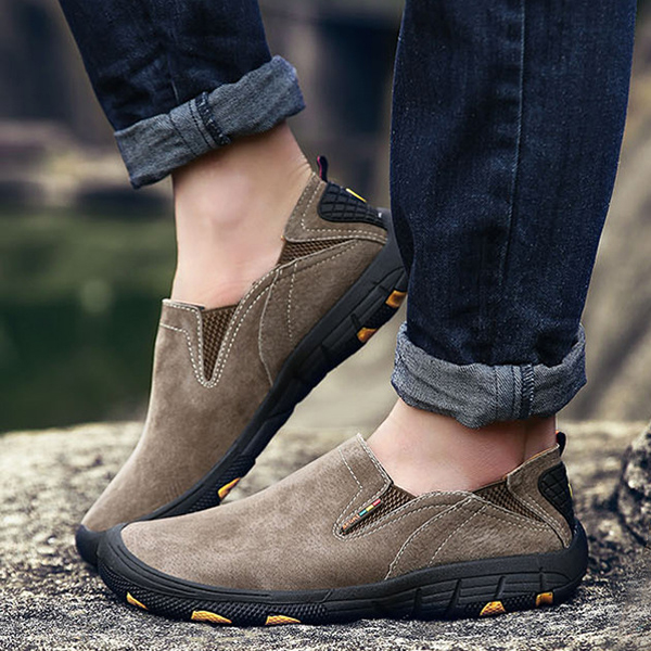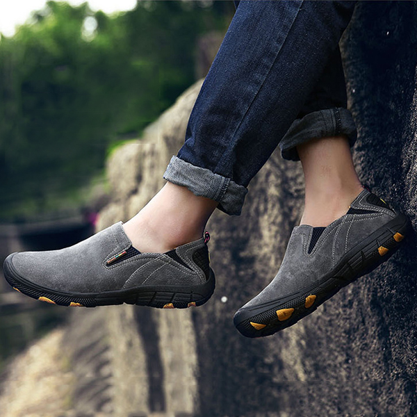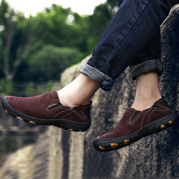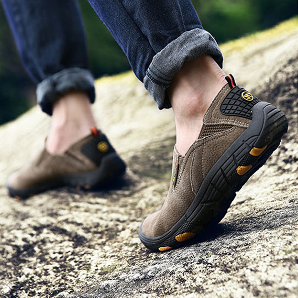 Men Soft Leather Comfortable Casual Hiking Shoes Wear and Slip Resistant