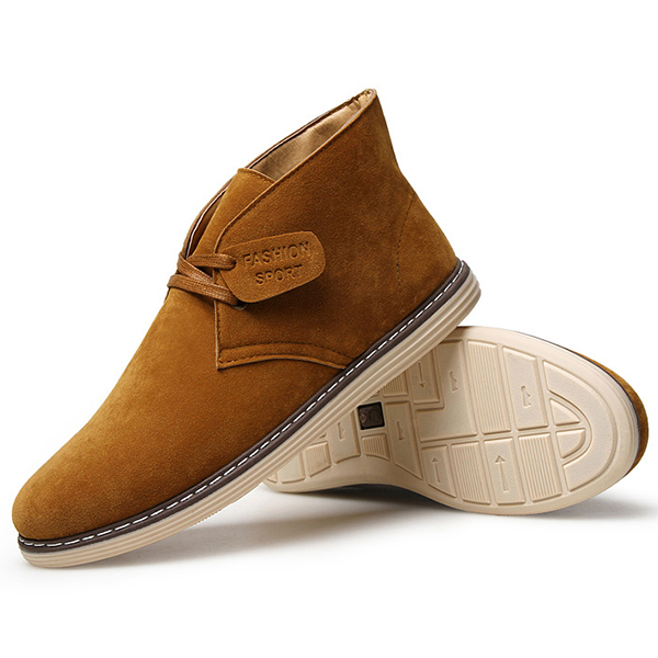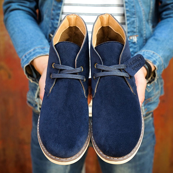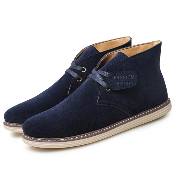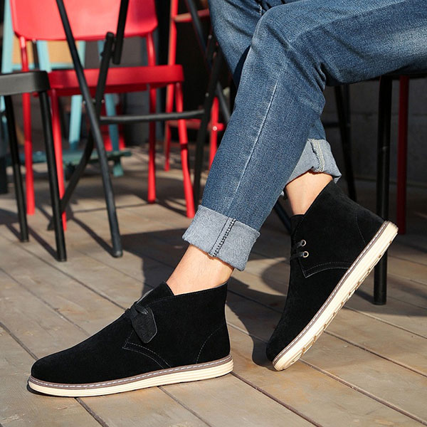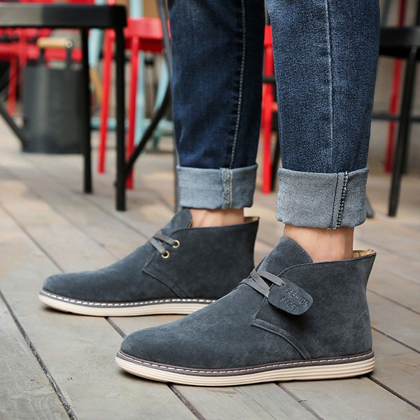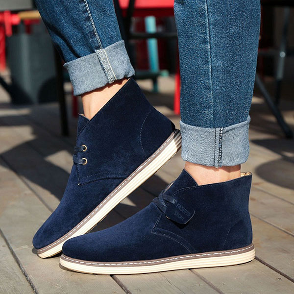 Men Soft Suede Leather High Top Flat Sneakers Boots