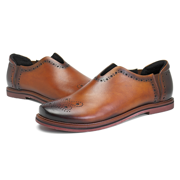 US Size6.5-11 Men Casual Soft Sole Comfy Brogue Style Genuine Leather Flats Oxfords Shoes