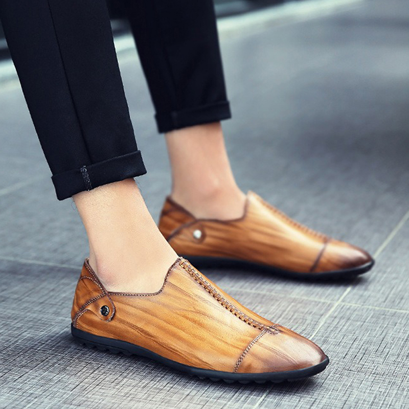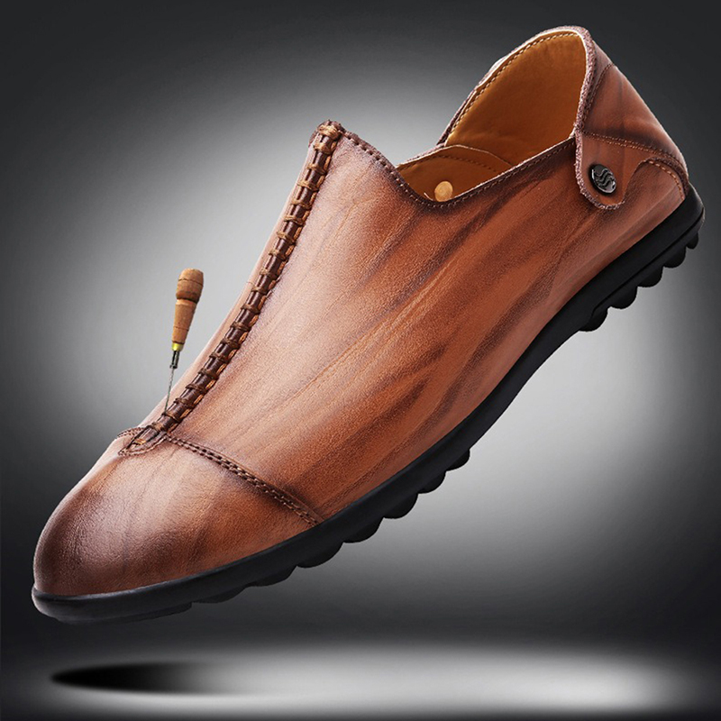 Men Lightweight Genuine Leather Casual Slip-on Flats