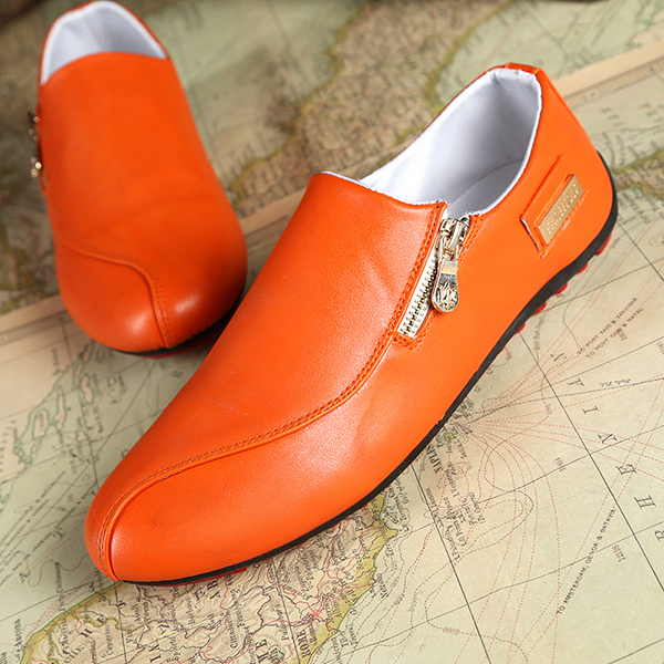 Men Flats Shoes Slip On Casual Comfortable Leather Zipper Loafers Shoes