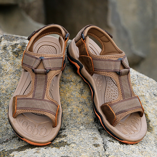 Men Open Toe Hook Loop Wear Resistance Outsole Breathable Sandals Shoes