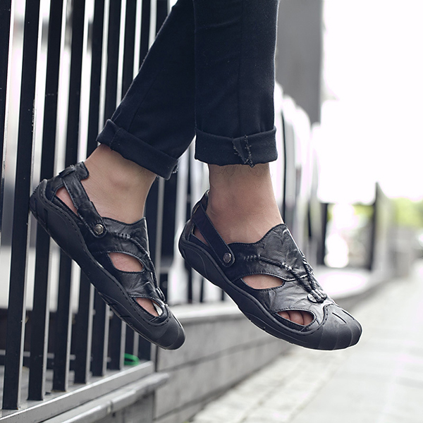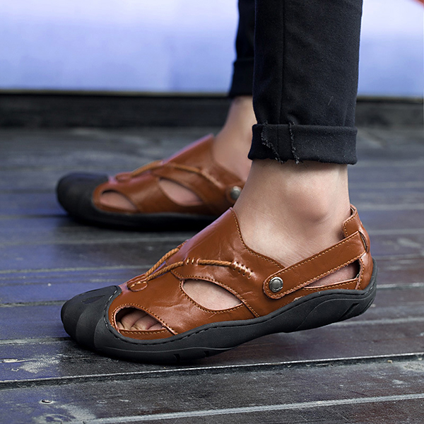 Men Comfortable Anti Collision Toe Genuine Leather Sandals Shoes