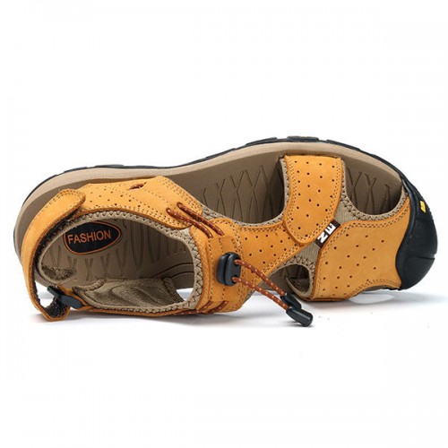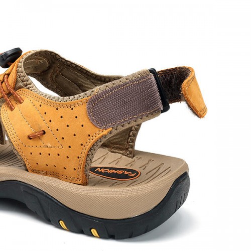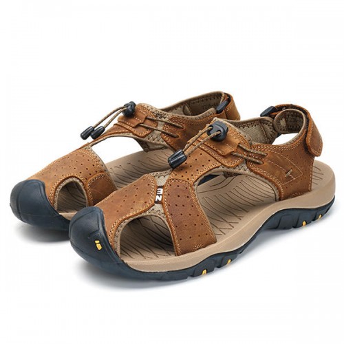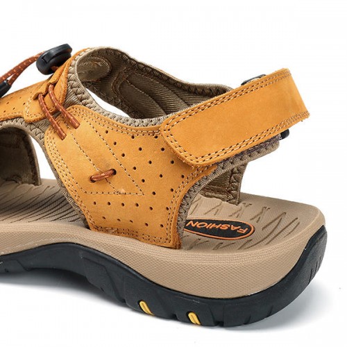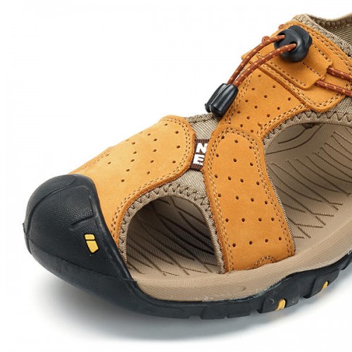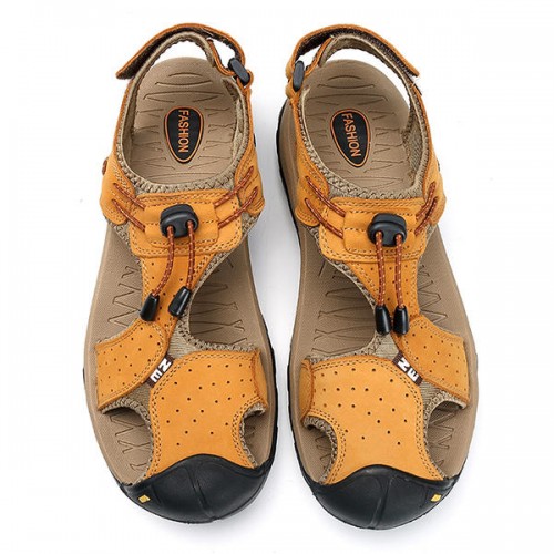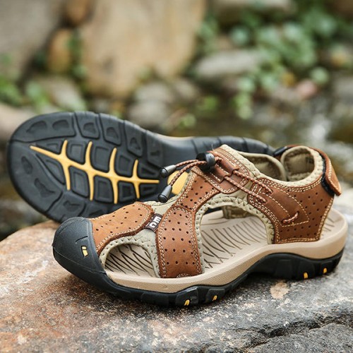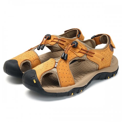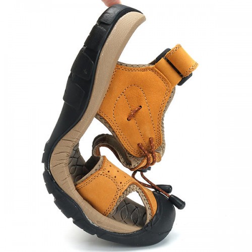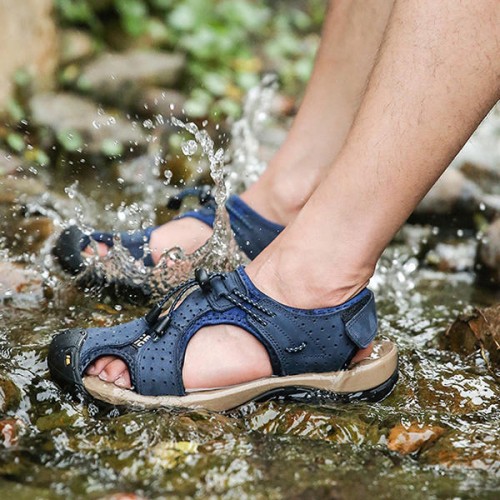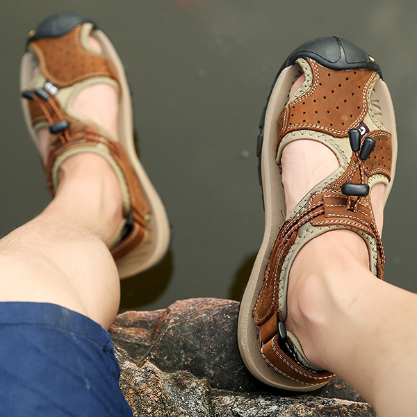 Men Anti Collision Toe Breathable Hollow Outs Adjustable Lace Up Sandals Shoes