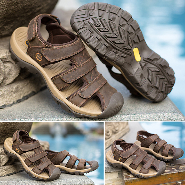 Men Leather Outdoor Beach Magic Stick Sandals Fisherman Breathable Sport Shoes