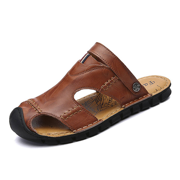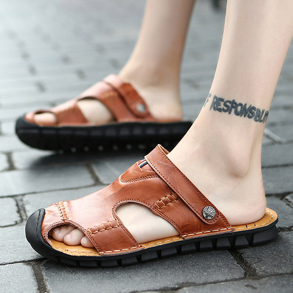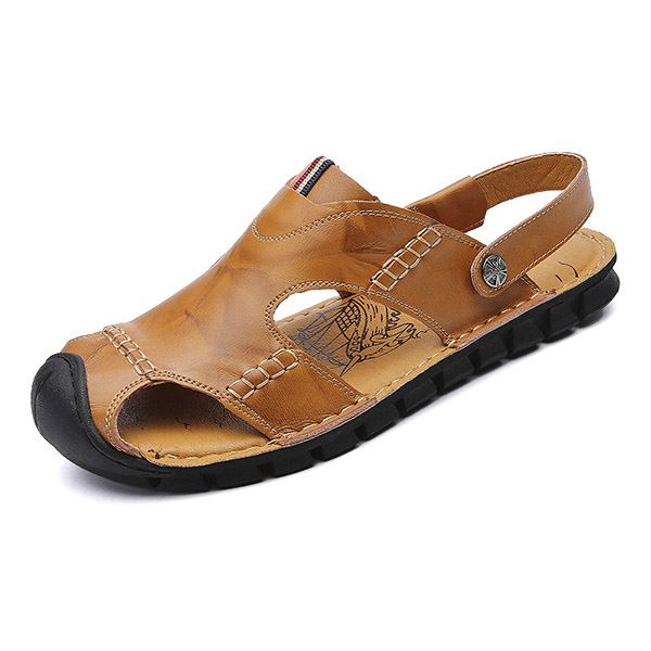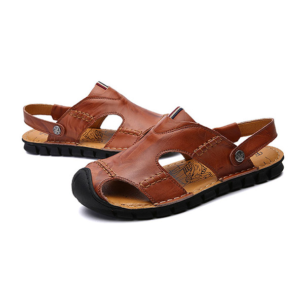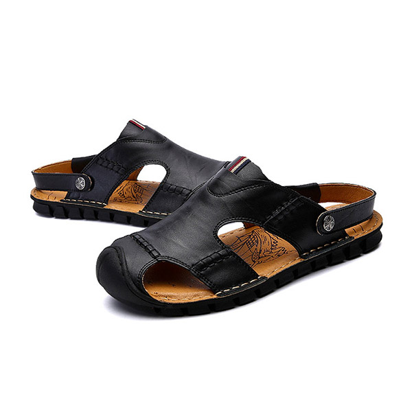 Men Casual Soft Anti Collision Toe Genuine Leather Sandals