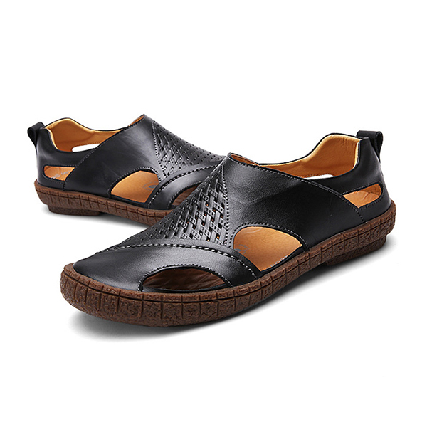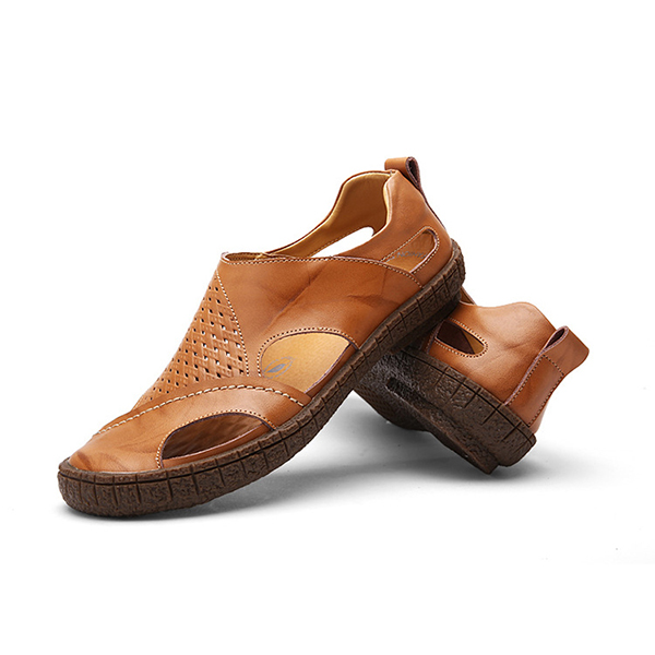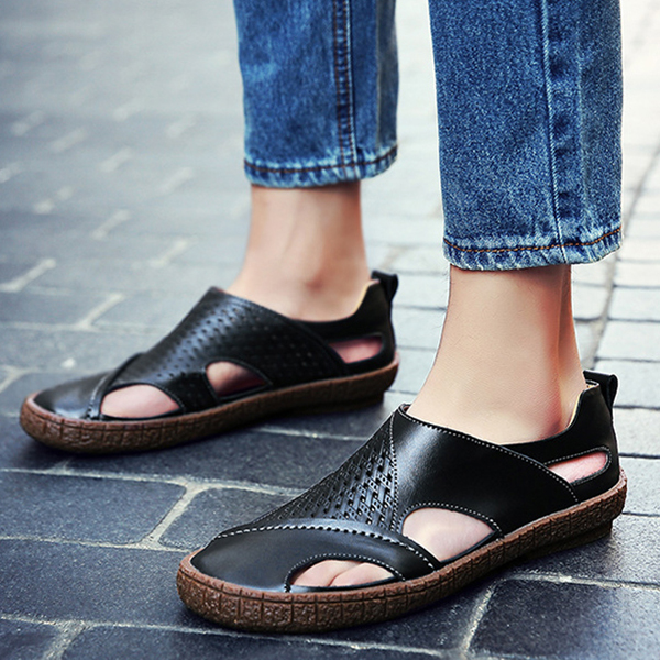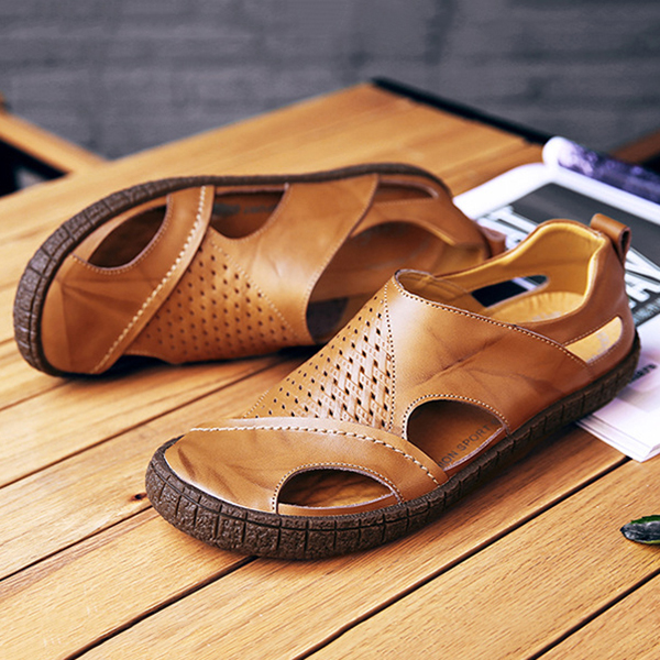 Soft Shoes Men Casual Breathable Genuine Leather Hollow Outs Sandals
