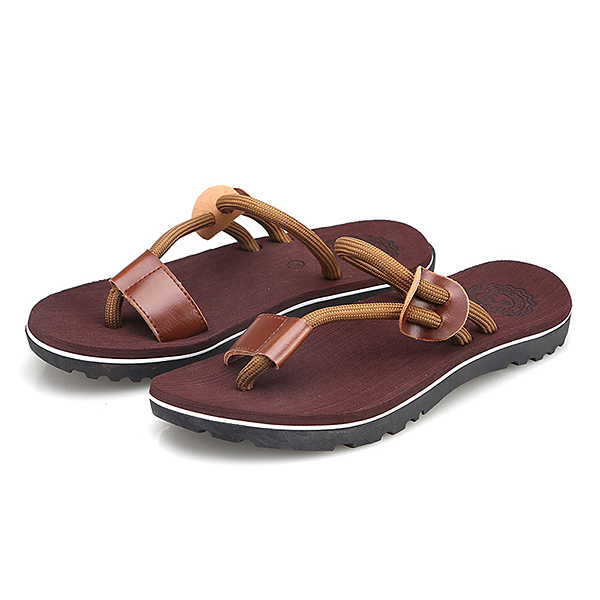 Men Casual PU Leather Clip Toe Slippers Beach Shoes