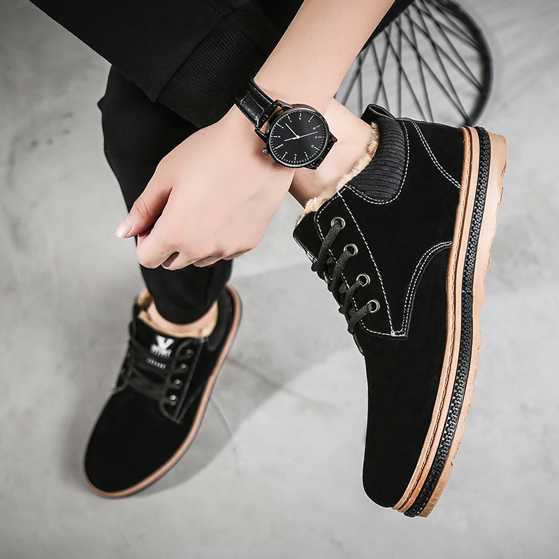 Men Warm Plush Lining Casual Lace Up Ankle Boots