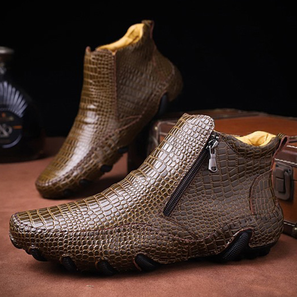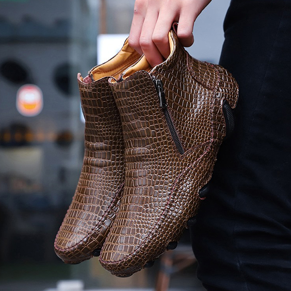 Men Slip Resistance Side Zipper Leather Ankle Boots