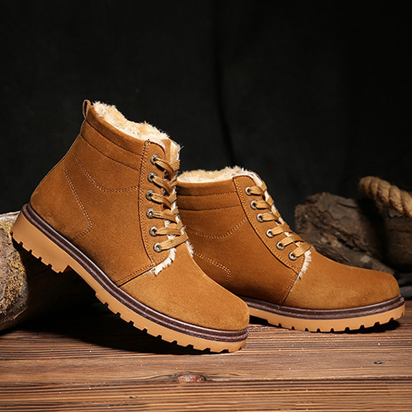 Men Coton Boots Fur Lining Keep Warm Plush High Top Outdoor Shoes