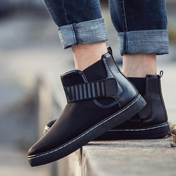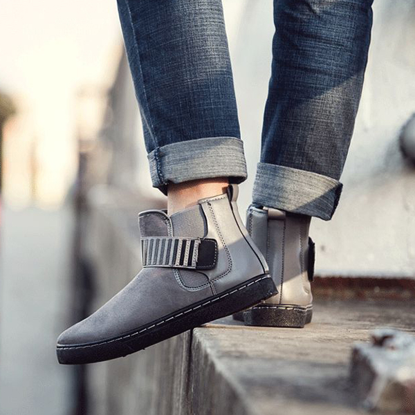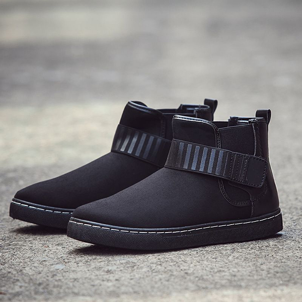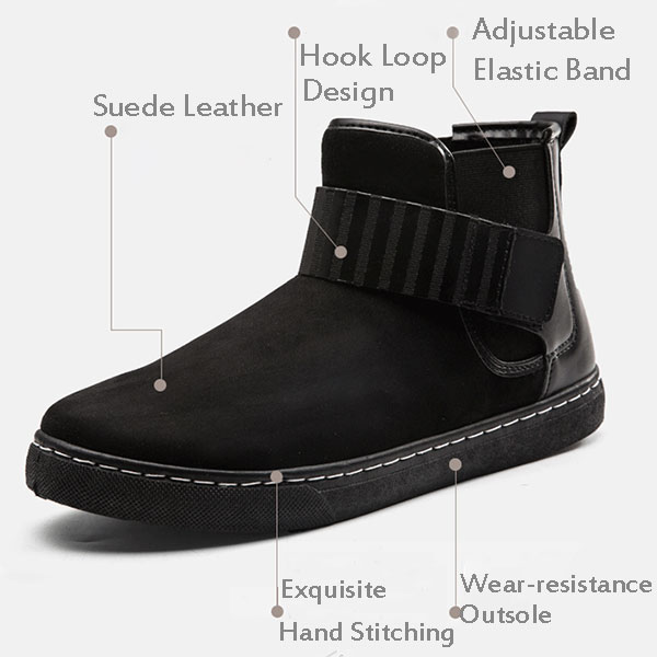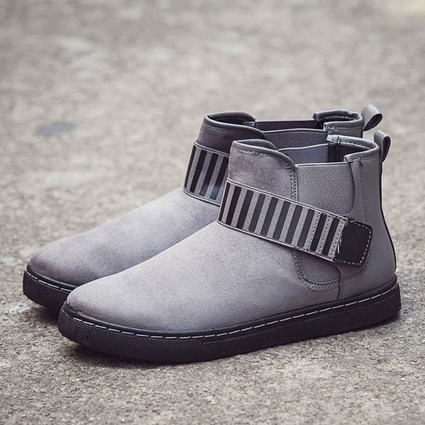 Men Hook Loop Stripe Elastic Band Comfortable Suede Ankle Boots