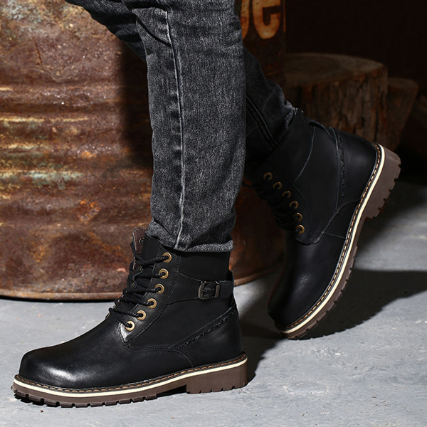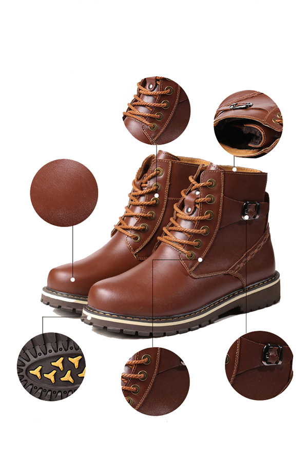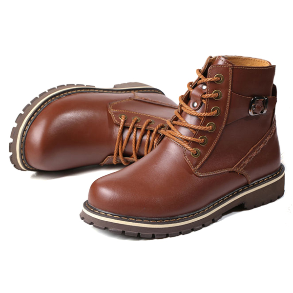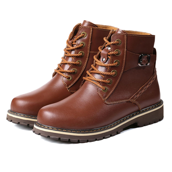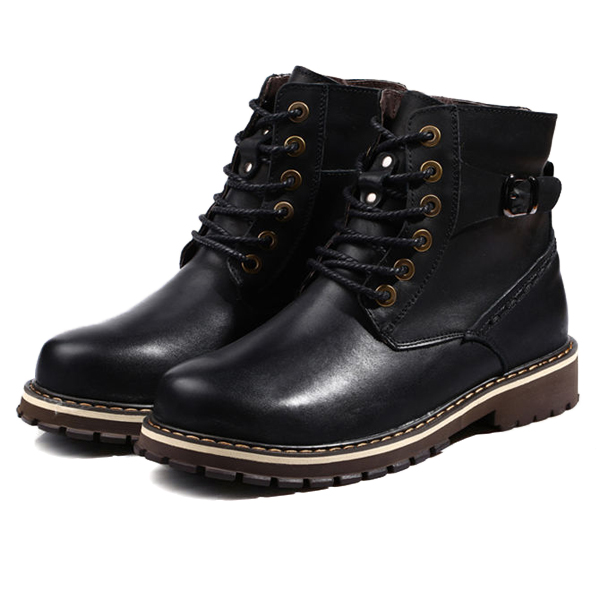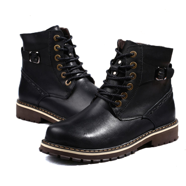 US Size 6.5-12 Big Size Men Winter Cotton Boots Lace Up Leather Plush Boots