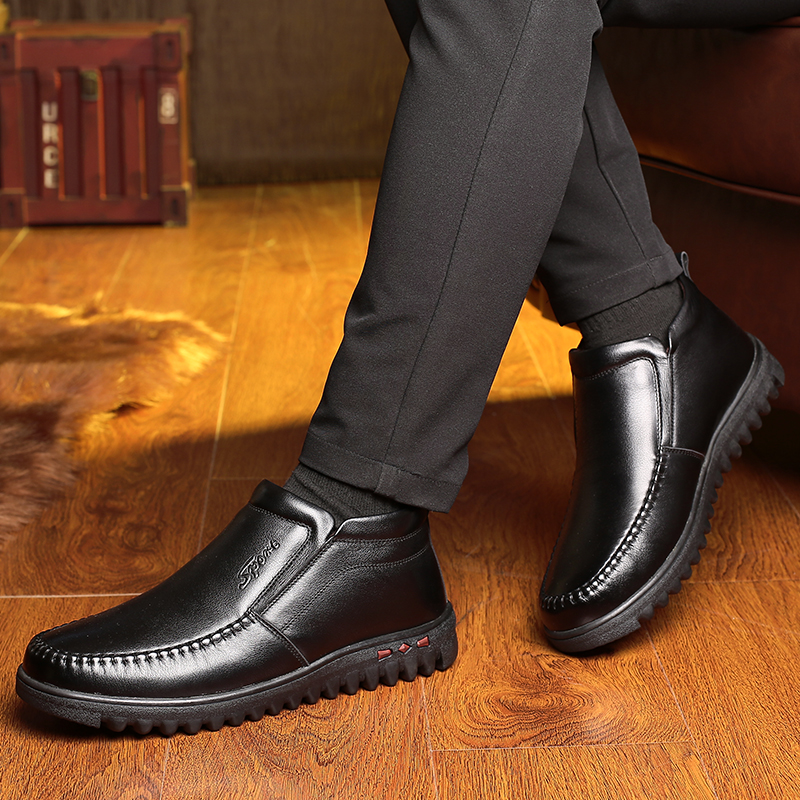 Men Casual Daily Warm Lining Leather Ankle Boots