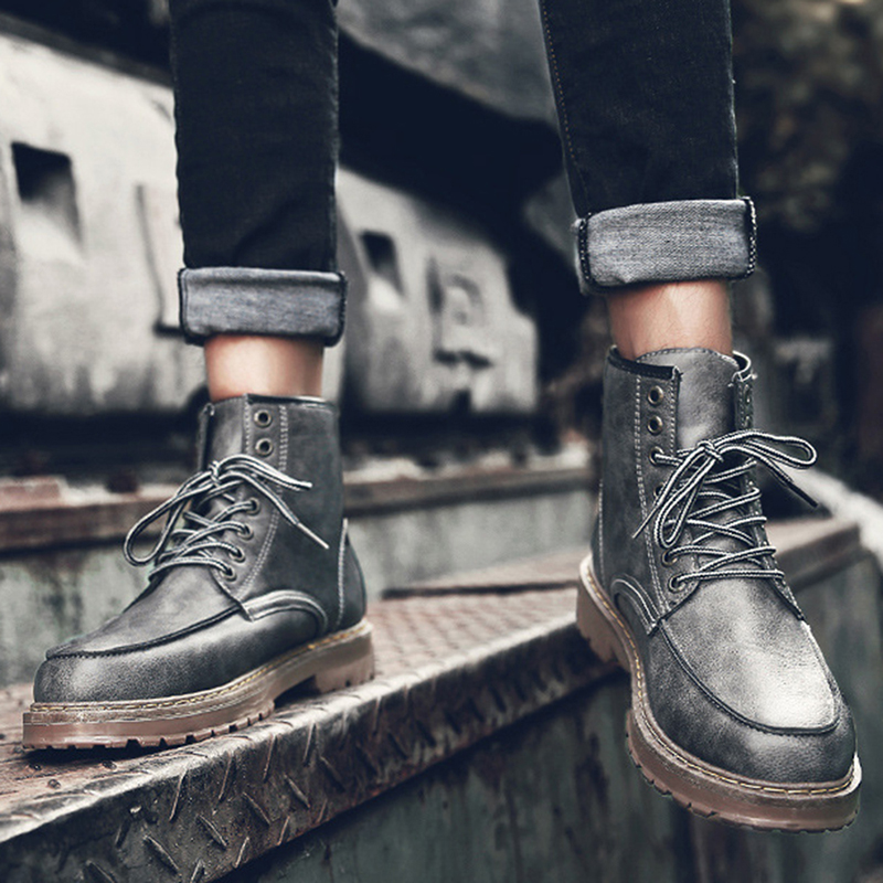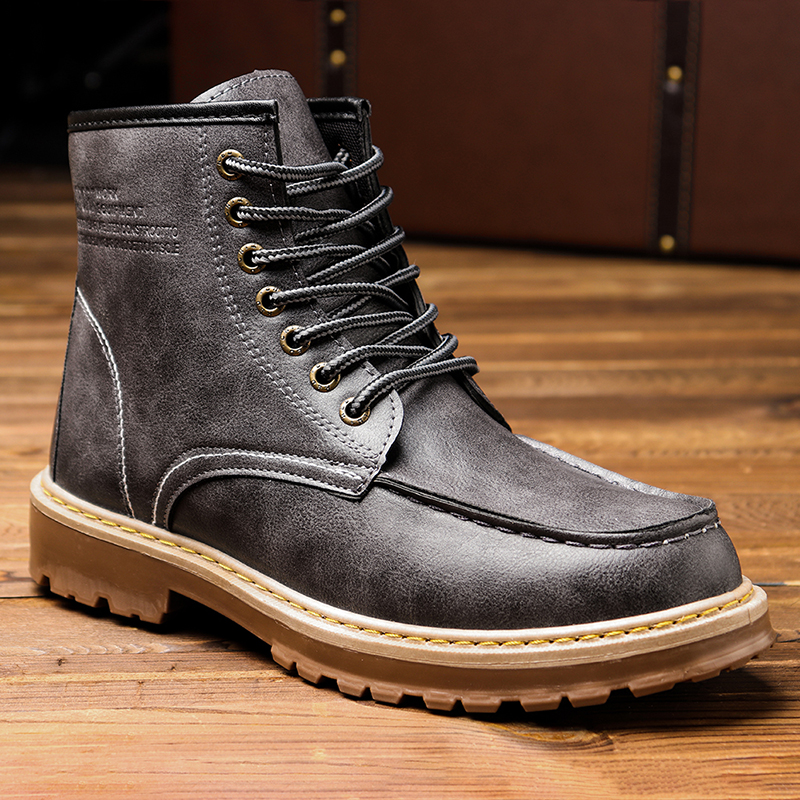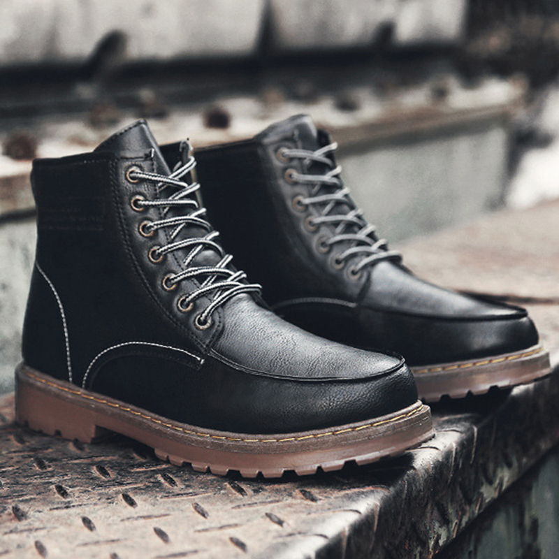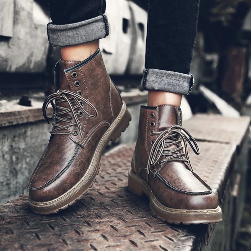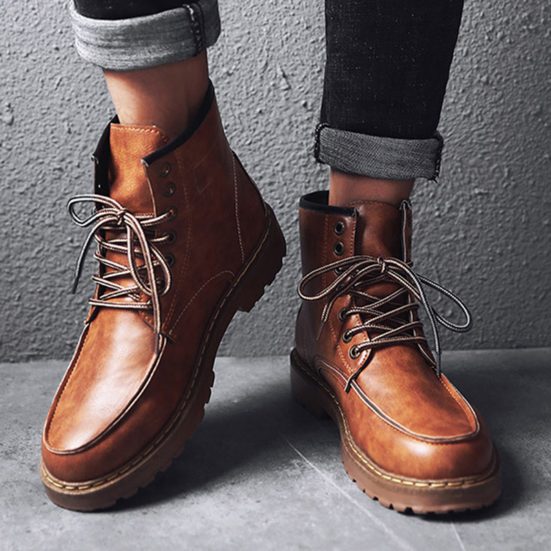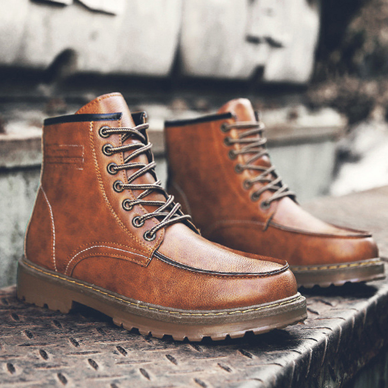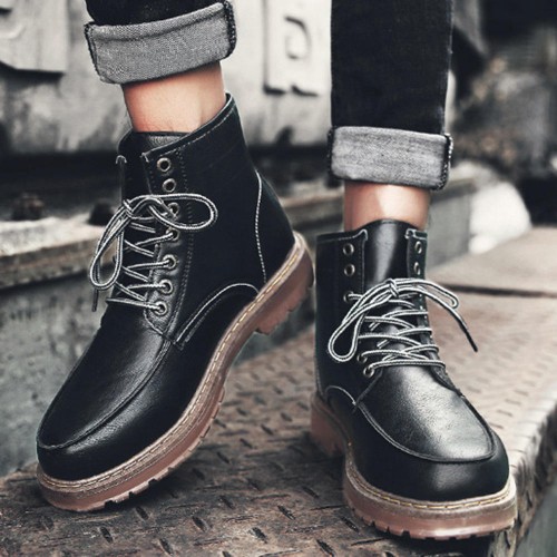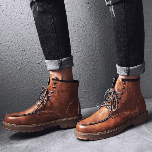 Men Fashion Autumn Lace up Leather Mid-calf Boots