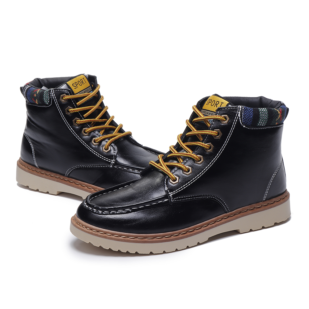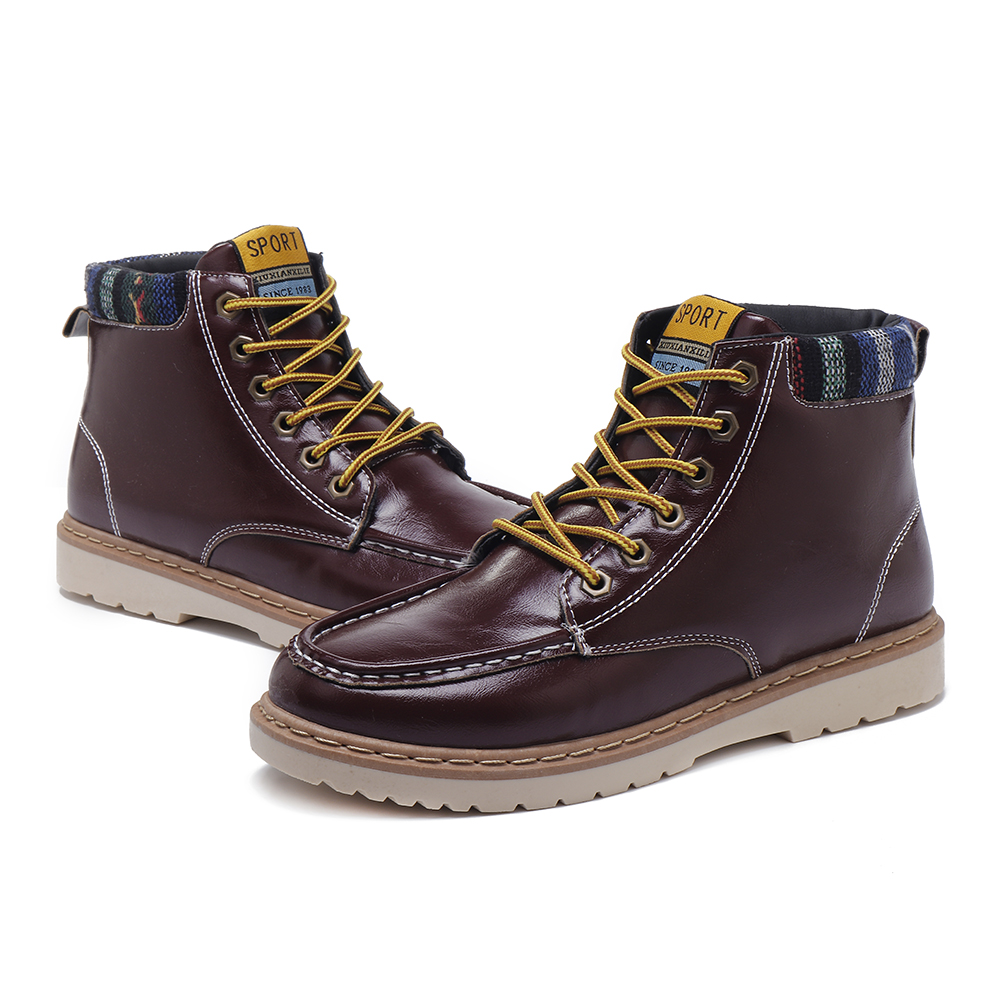 Men Casual Soft Leather Ankle Boots Lace Up Boots Moc Toe Shoes