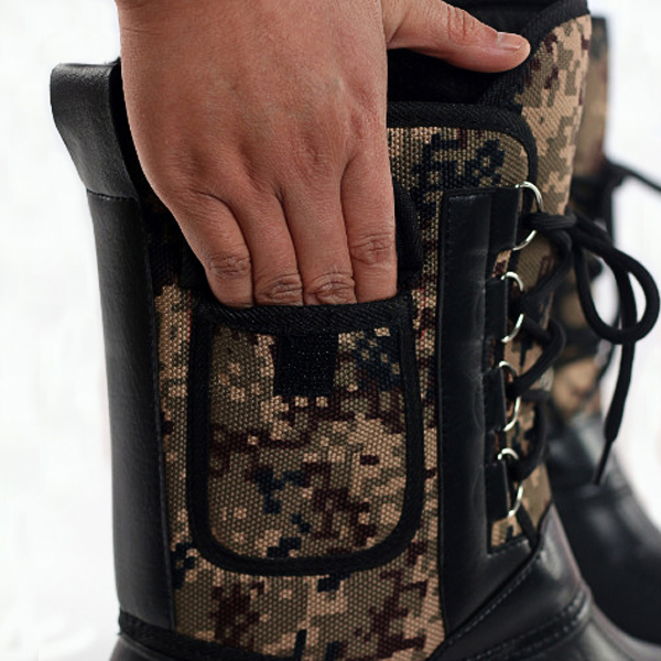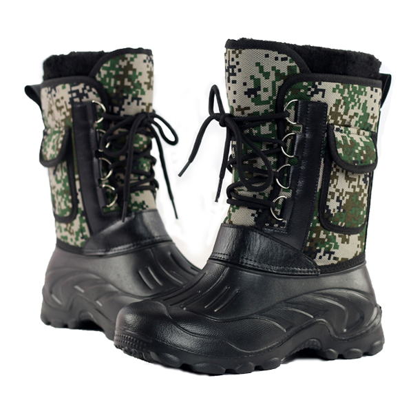 US Size 8-11 Men Shoes Camo Hunting Boots Waterproof Faux Fur Lining Rubber Toe
