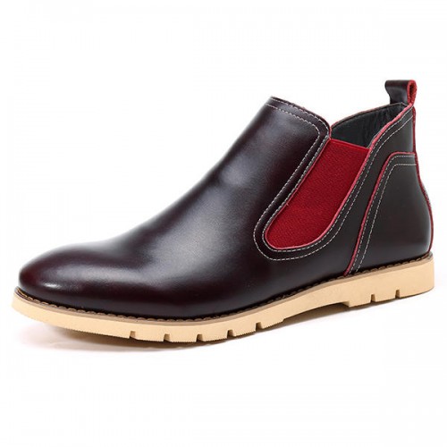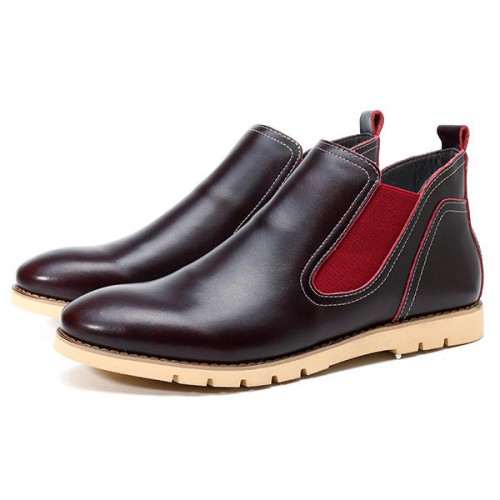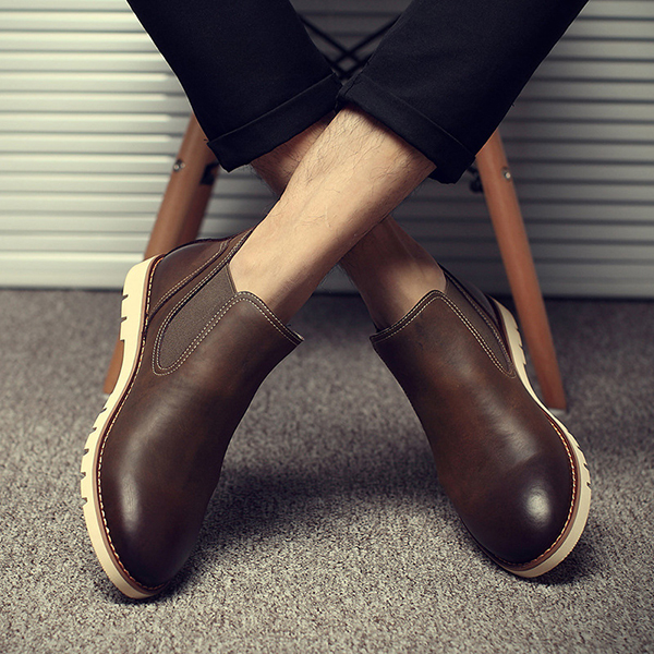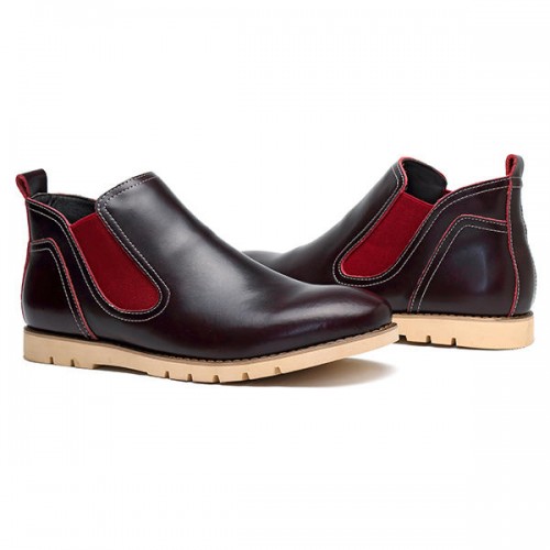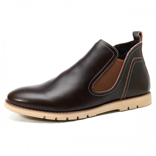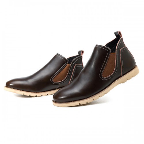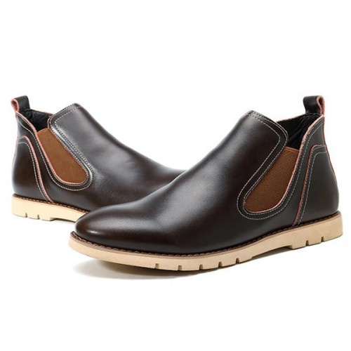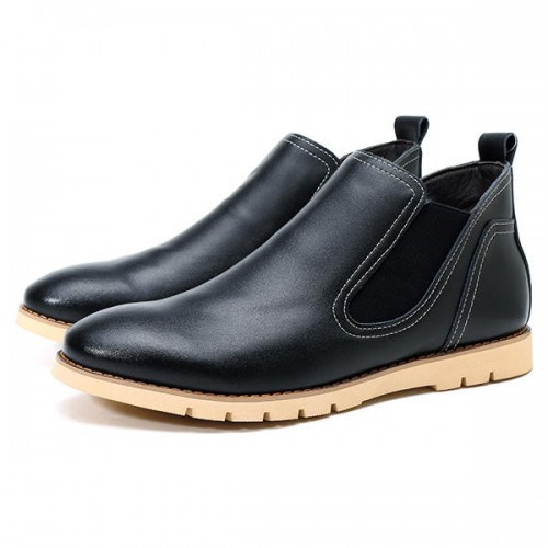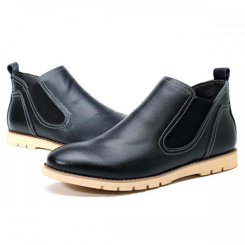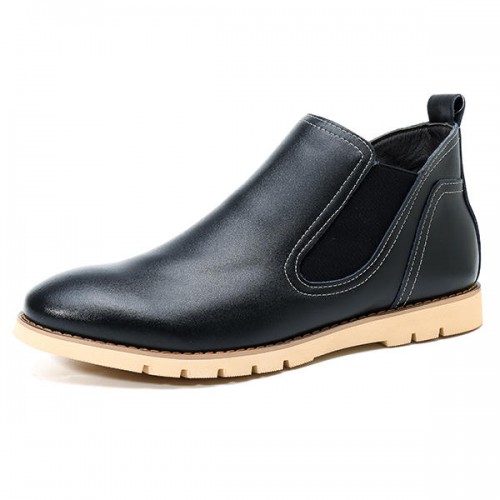 Comfy Casual Business Genuine Leather Elastic Band Soft Sole High Top Oxfords for Men
