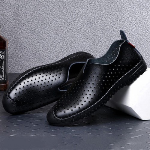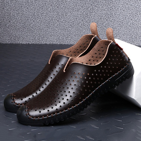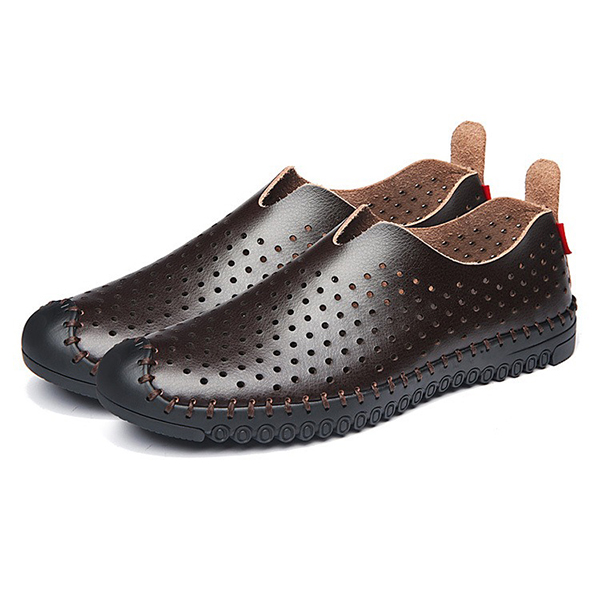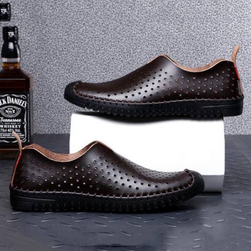 Banggood Shoes Men Comfy Breathable Hollow Outs Genuine Leather Slip On Oxfords