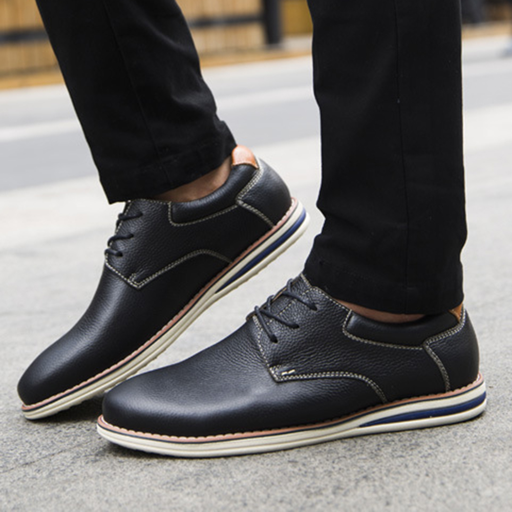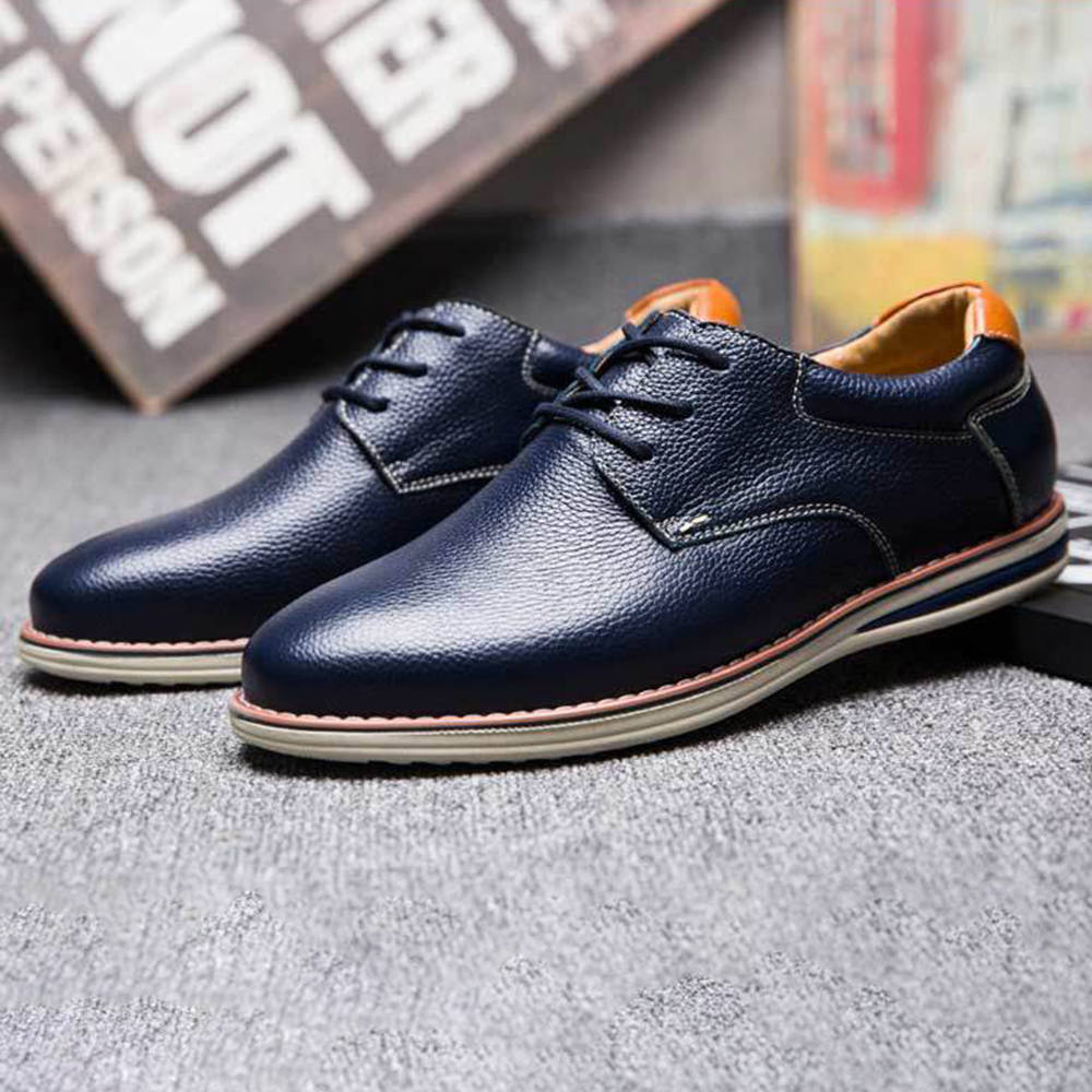 Men Soft Genuine Leather Lace Up Oxfords Shoes