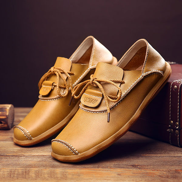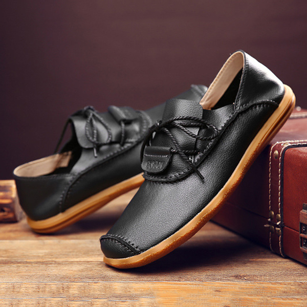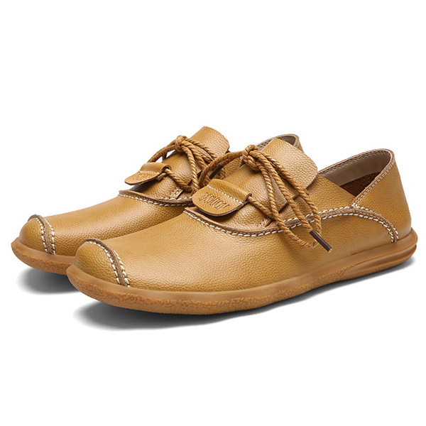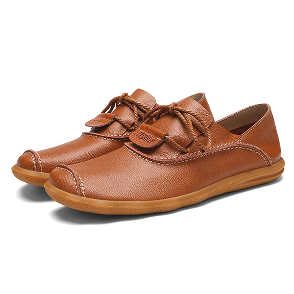 Men Soft Genuine Leather Lace Up Oxfords Hand Stitching Shoes
