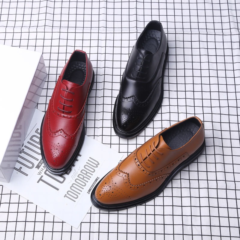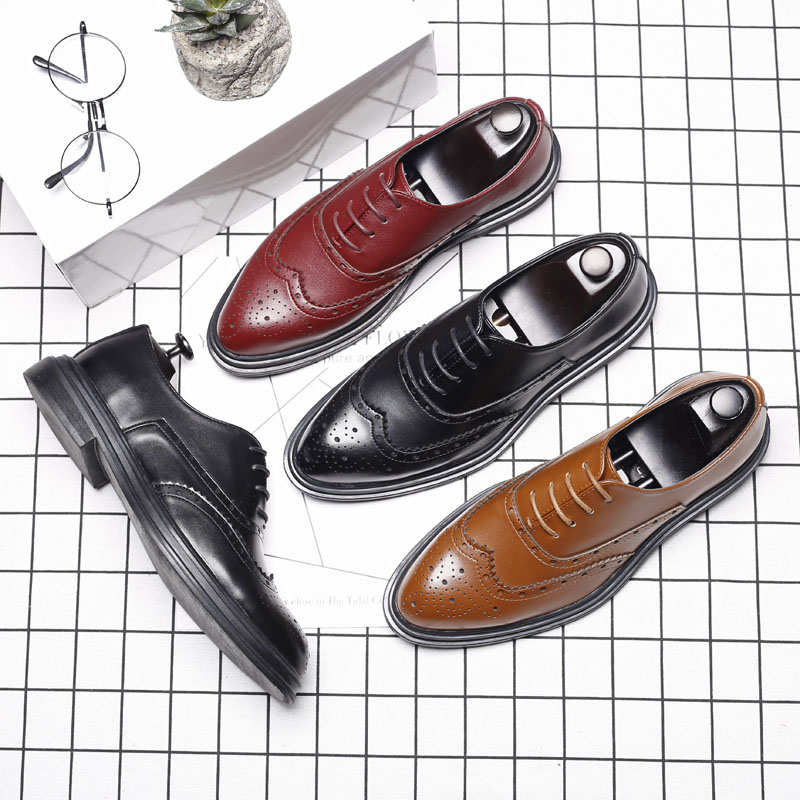 Men Brogue Carved Dress Shoes Microfiber Business Oxfords