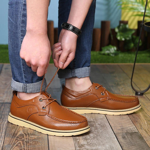 Men Comfortable Soft Leather Lace Up Oxfords Shoes