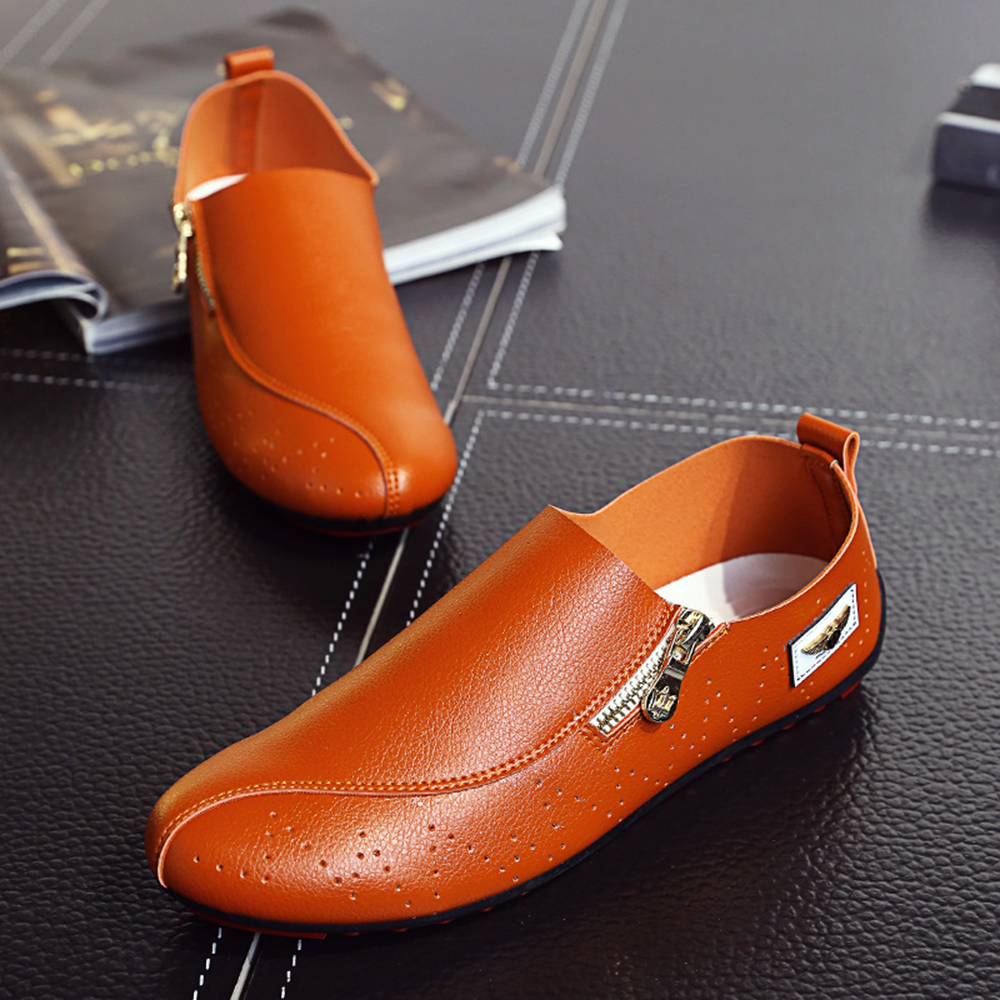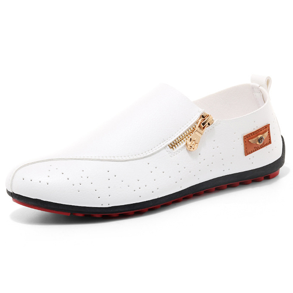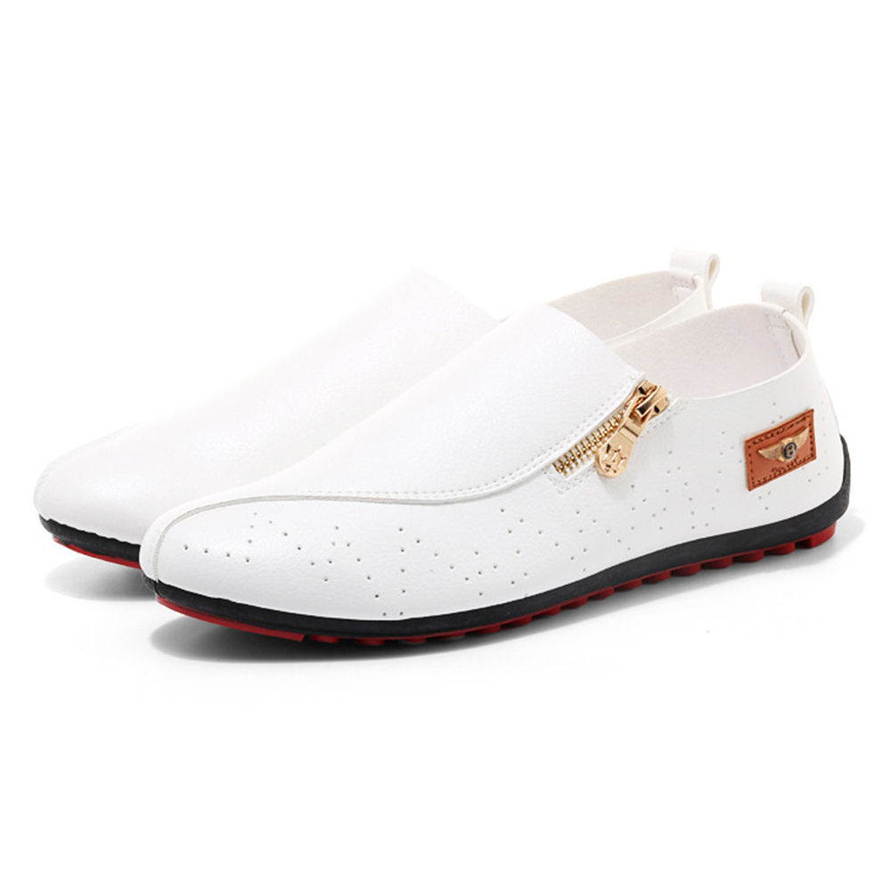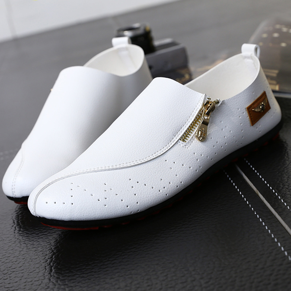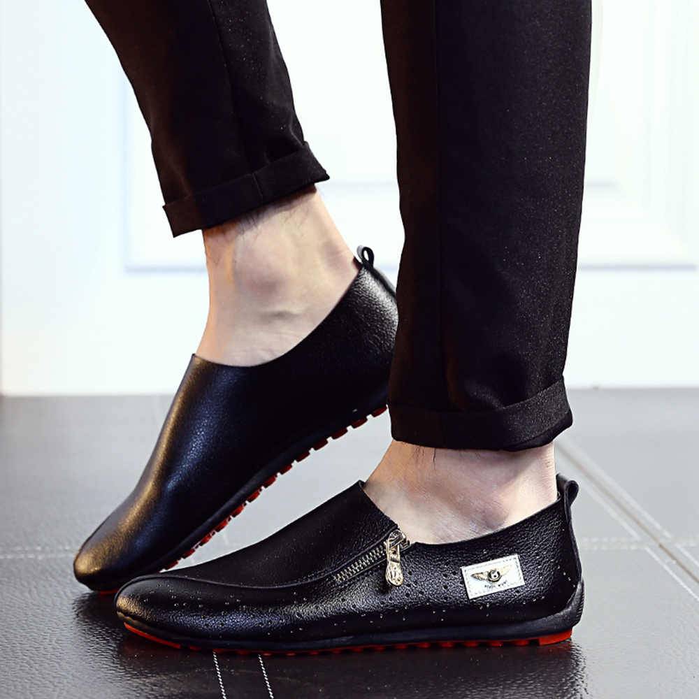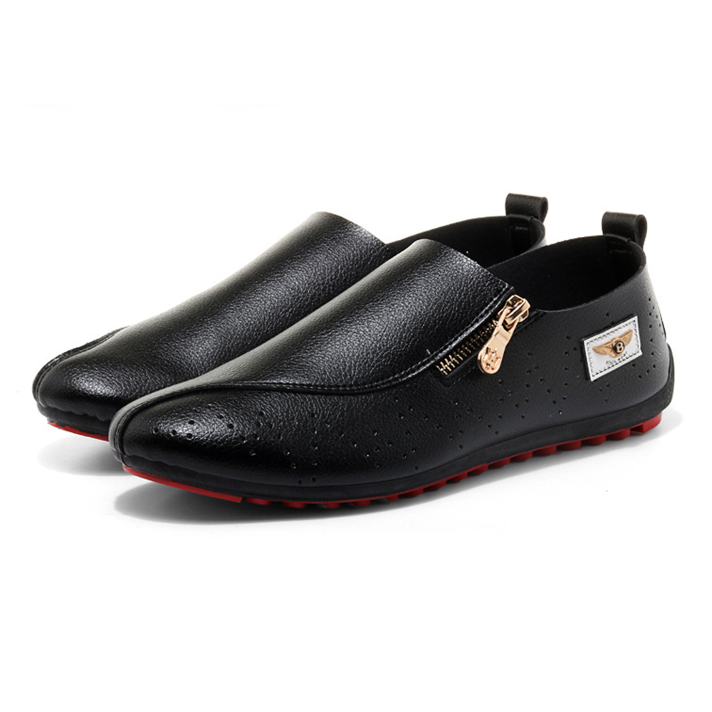 Men Casual Soft Sole Side Zipper Leather Flat Loafers