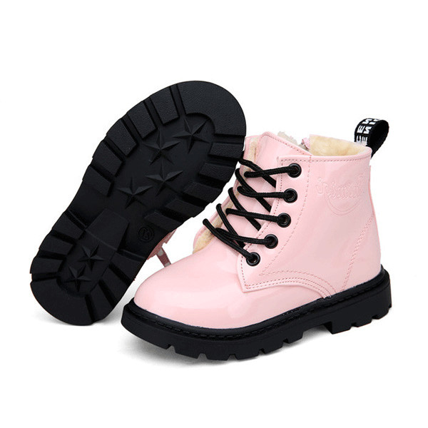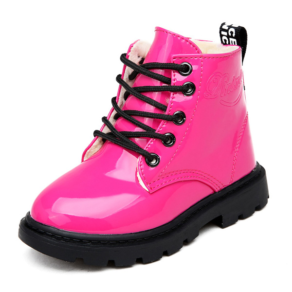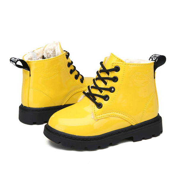 Children Unisex Winter Plush Warm Waterproof PU Leather Casual Boots
