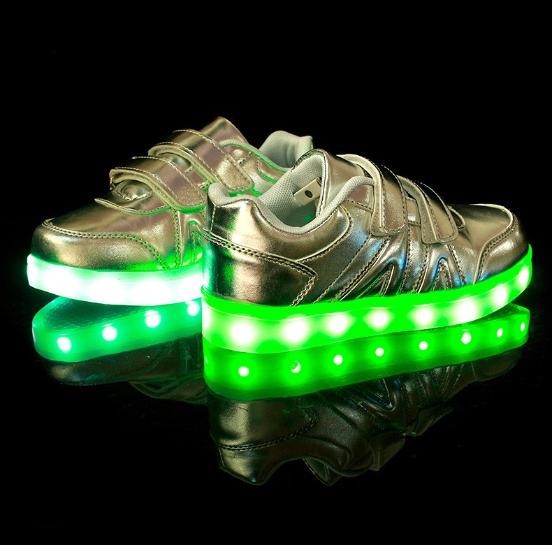 Seven colors in one shoes : yellow, purple , white, light blue, dark blue, orange , green and flash light.