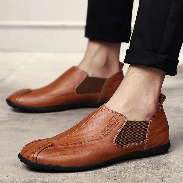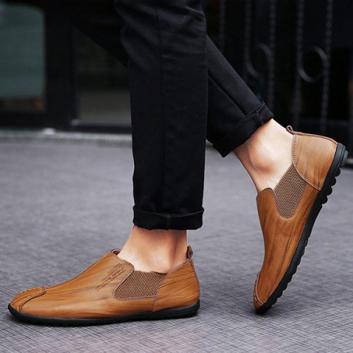 Banggood Shoes Men Casual Hand Stitching Genuine Leather Elastic Flat Oxfords