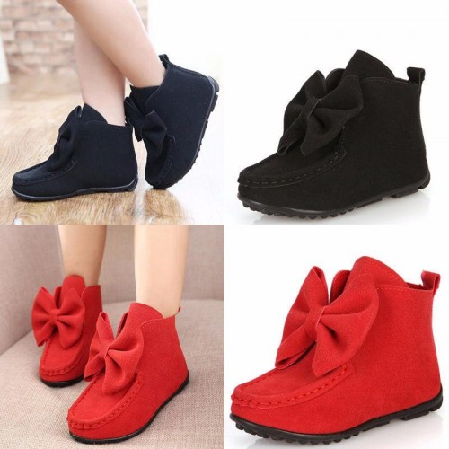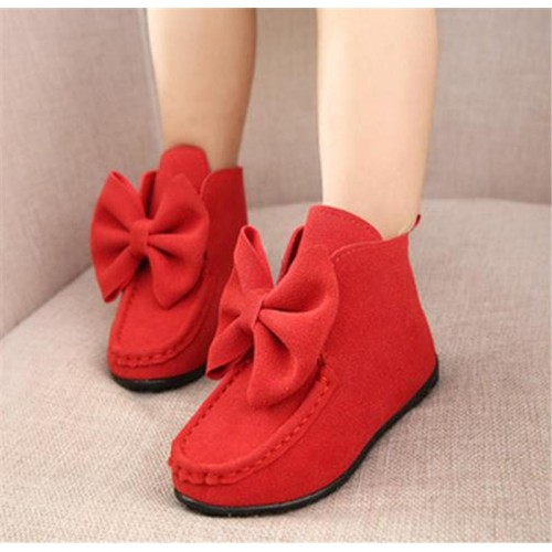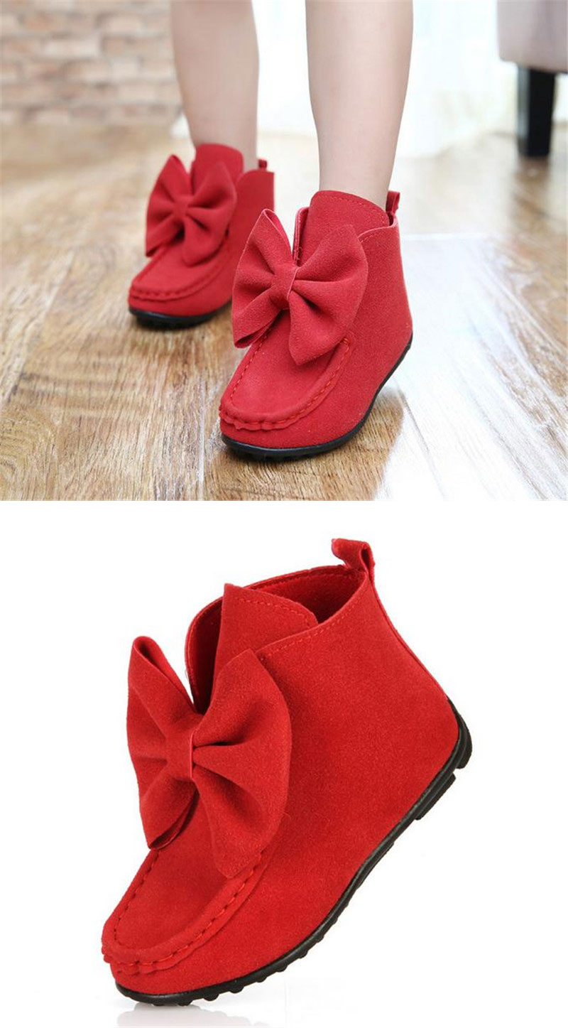 Winter Baby Kids Girls Dancing Shoes Adornment Santa Christmas Gift Princess Leather Flats Bowknot Short Boots