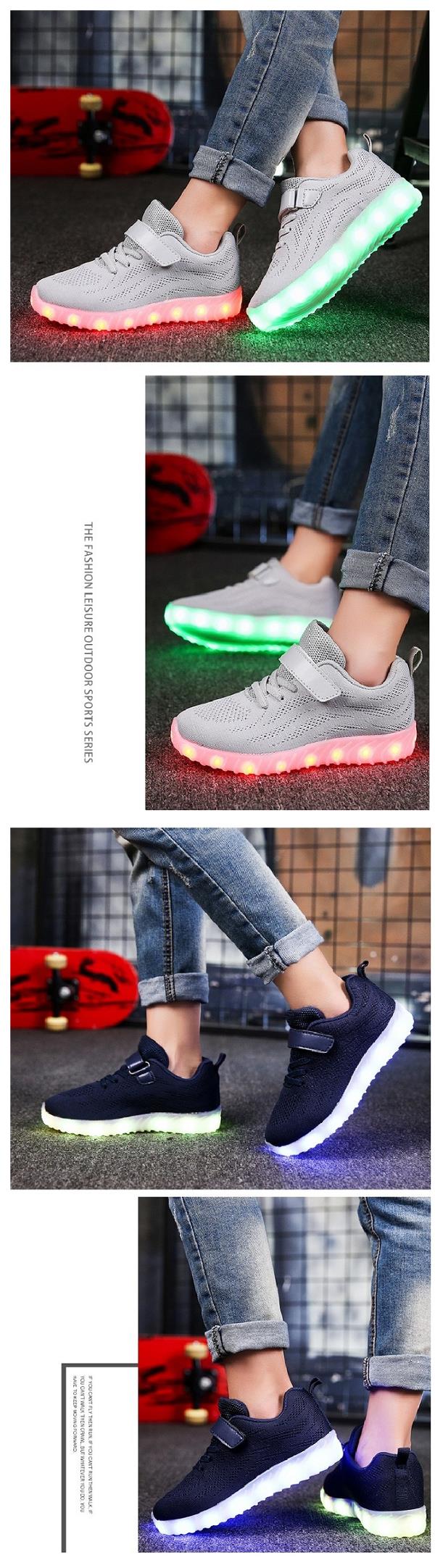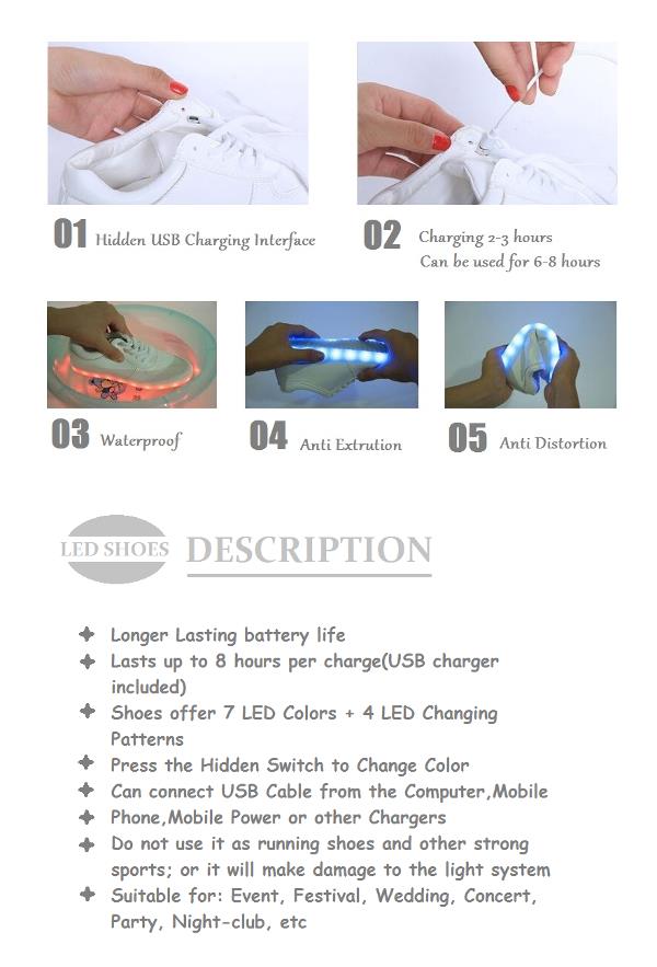 Features : LED Light Up Shoes with 7 kinds of Static Color and 3 Changing Patterms.