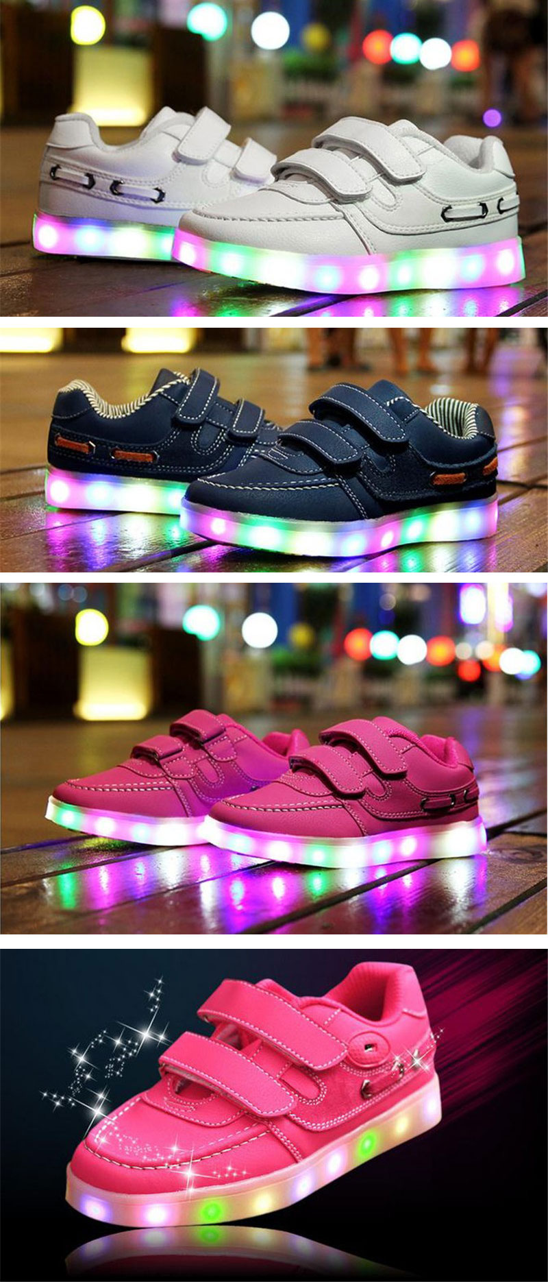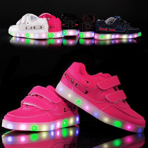 Kids Colorful LED Shoes Sneakers Light Up Sports Shoes Dance Magic Tapes