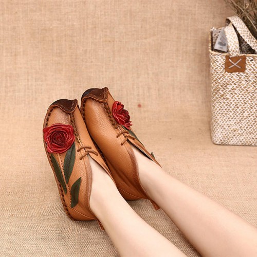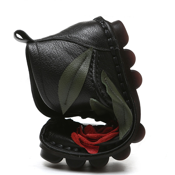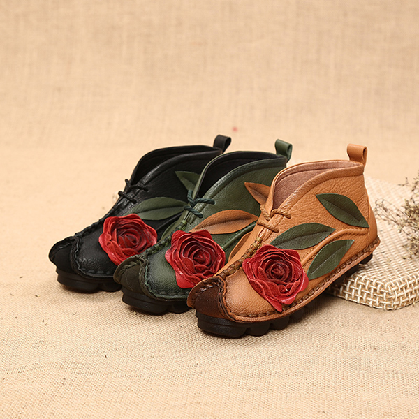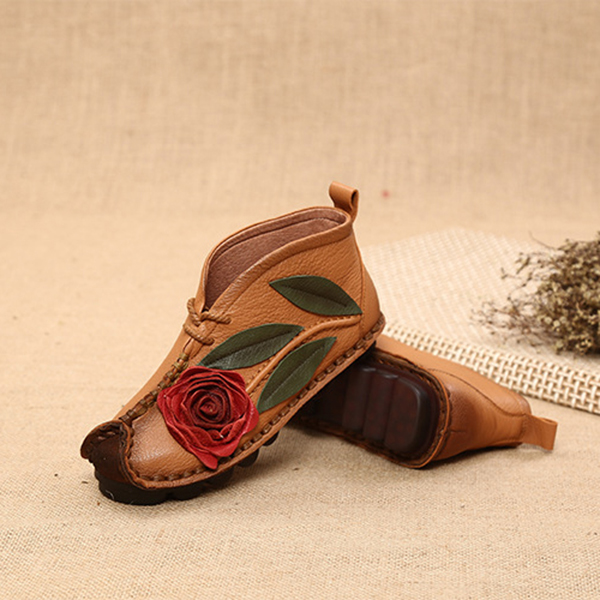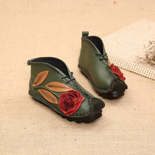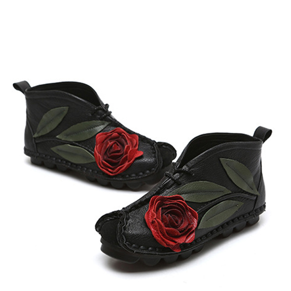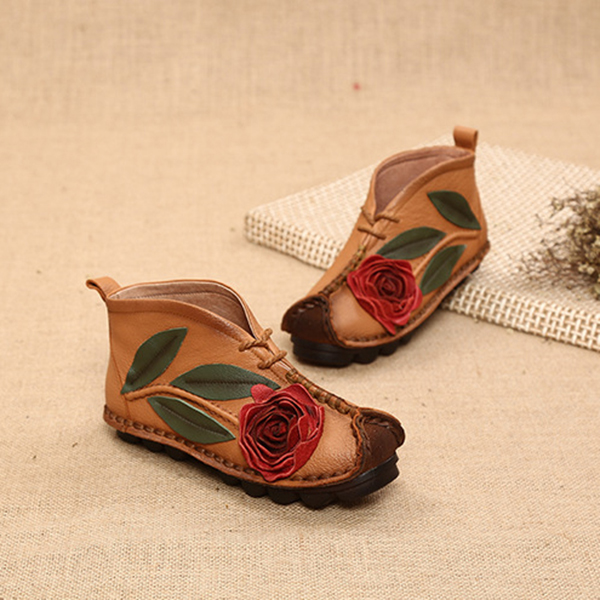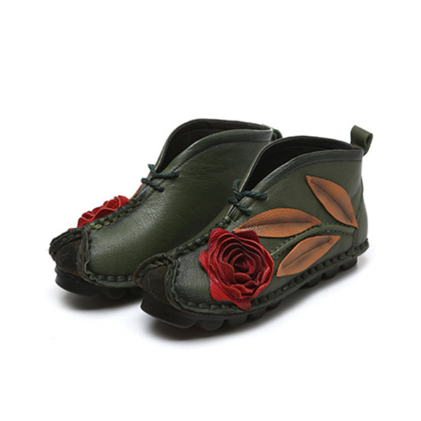 SOCOFY Genuine leather Soft Sole Flower Ankle Short Boots