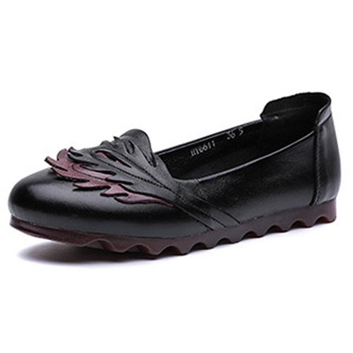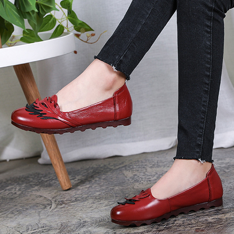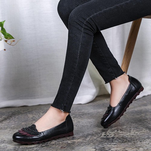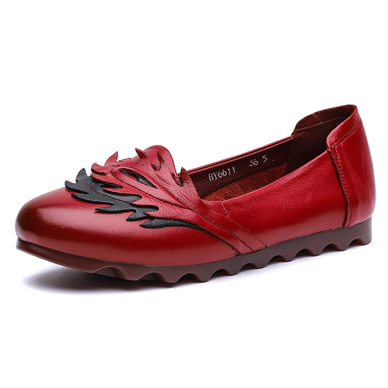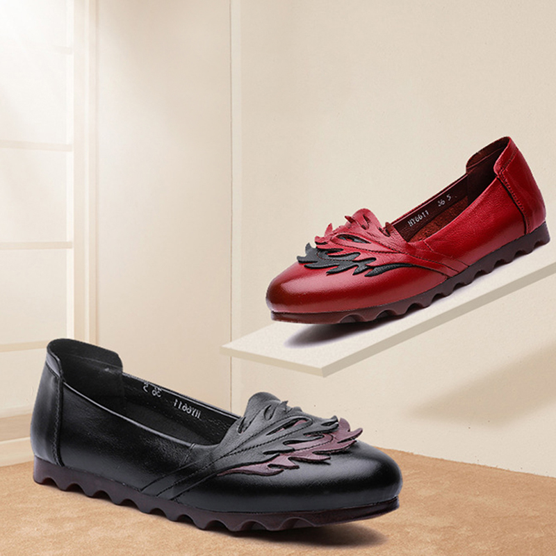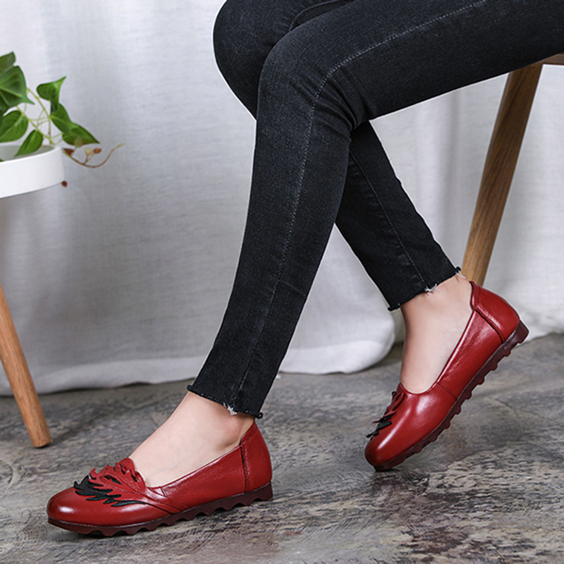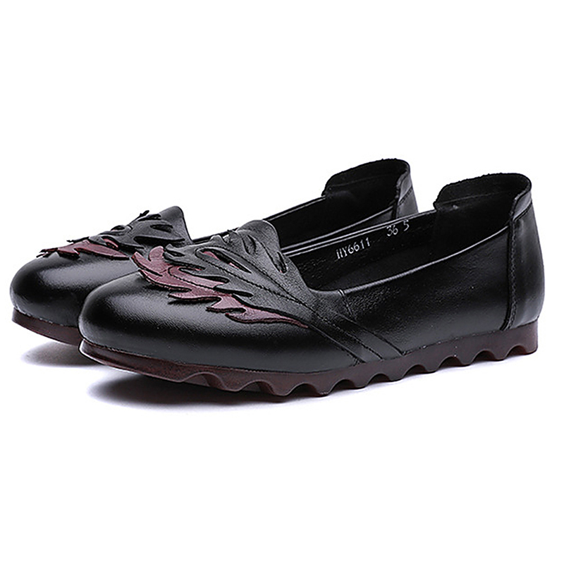 Genuine leather Leaves Pattern Comfortable Flats Shoes