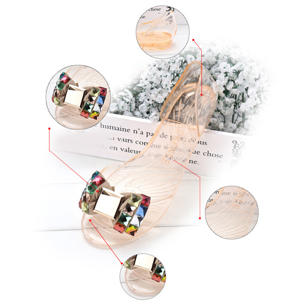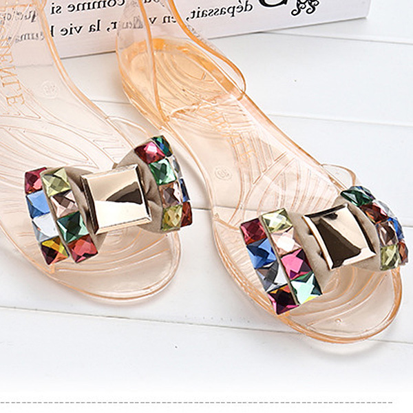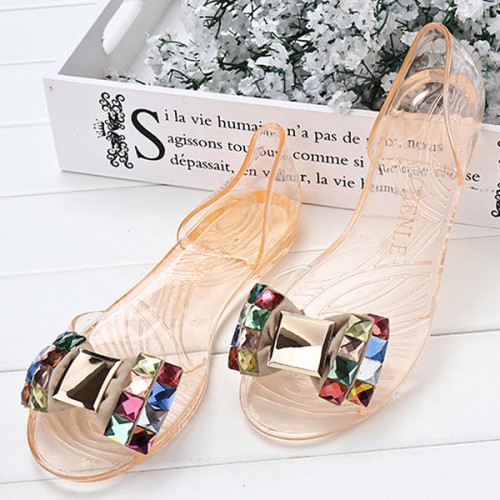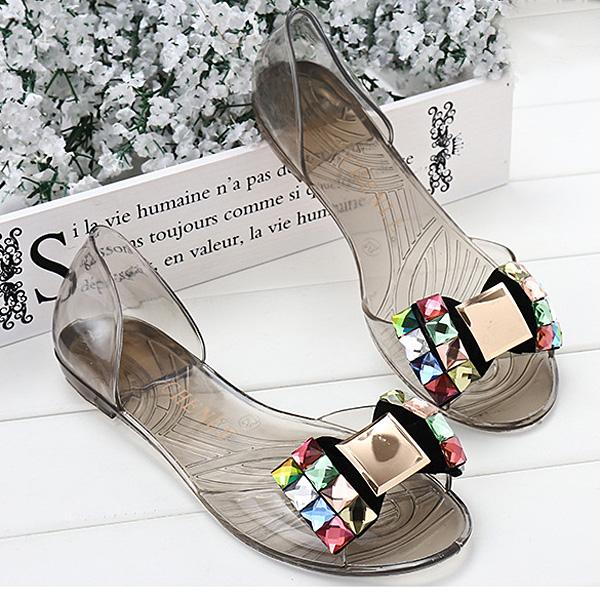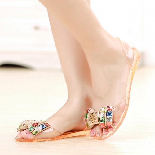 Women Summer Chic Beach Sandals Peep Toe Flat Rhinestone Shoes
