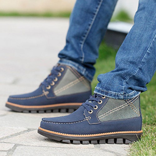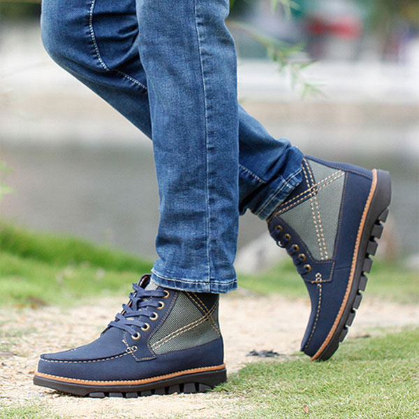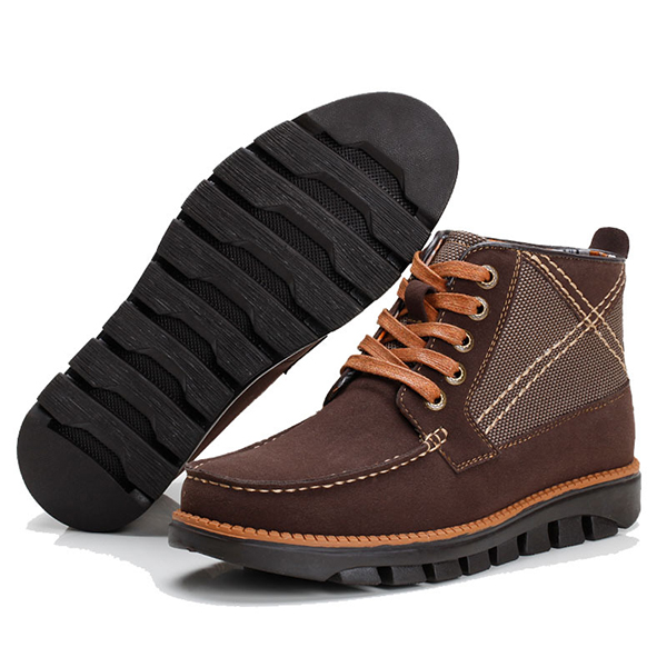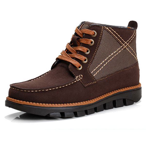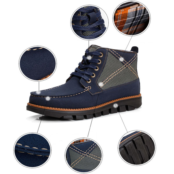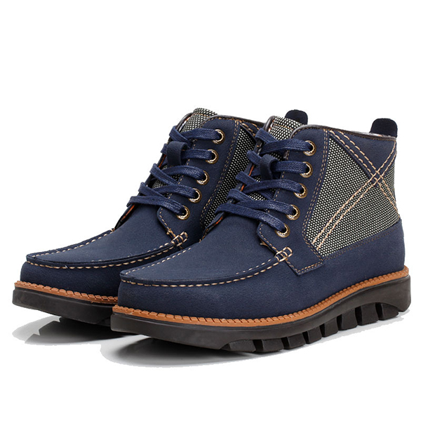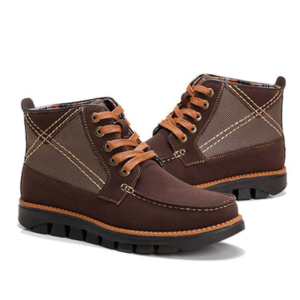 Men Comfortable Hand Stitching Plaid High Top Boots
